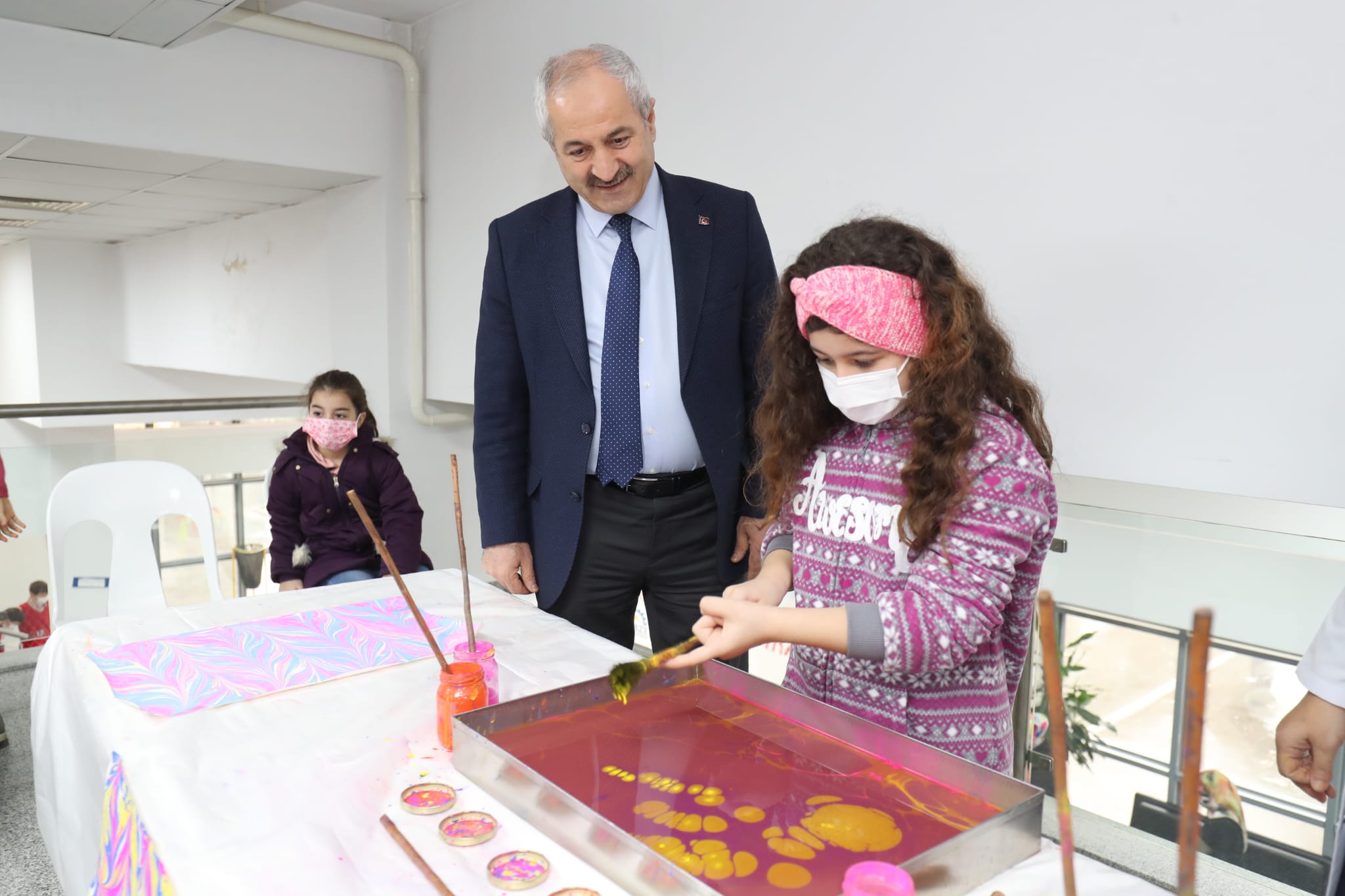 Atölyelerde derslerine eğlenceli bir şekilde devam eden öğrencileri yalnız bırakmayarak ziyaret eden Gebze Belediye Başkanı Zinnur Büyükgöz, çocuklarla el işi dersine katıldı. Miniklerle birlikte GKM’de sergilenen Deniz Kabuğu Adası isimli çocuk tiyatro gösterisini de izleyen Gebze Belediye Başkanı Zinnur Büyükgöz, “Karne şenliğimize katılan siz değerli evlatlarımızla birlikte tüm çocuklarımızı bizler çok seviyoruz. Tatilde atölyelerimizdeki oyunlara ve atölyelere katılarak keyifli zaman geçiren sizlerin, diğer boş vakitlerinizi de kitap okuyarak iyi değerlendirmenizi istiyorum. Haftaya açılacak okullarınızda da başarılar diliyorum. Rabbim derslerinizde zihin açıklığı versin inşallah. Allah’a emanet olun” dedi.