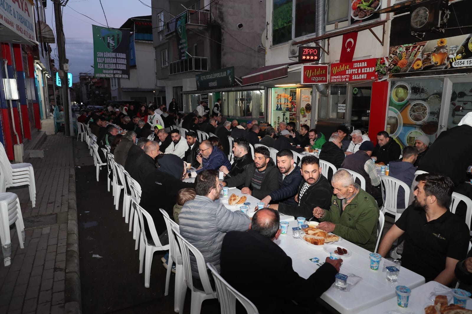 Üçyol Kocaelisporlular Derneği Başkanı Fatih Taşer ve yönetiminin ev sahipliğinde dernek lokali önünde iftar programı düzenlendi. İftara, İzmit Belediye Başkanı Fatma Kaplan Hürriyet’in yanı sıra Kocaelispor’un eski futbolcuları Osman Çakır, Engin Öztonga, Cem Sinan Vergül, Haydar Koç, Faruk Sarman ve çok sayıda Kocaelispor taraftarı ile davetliler katıldı.