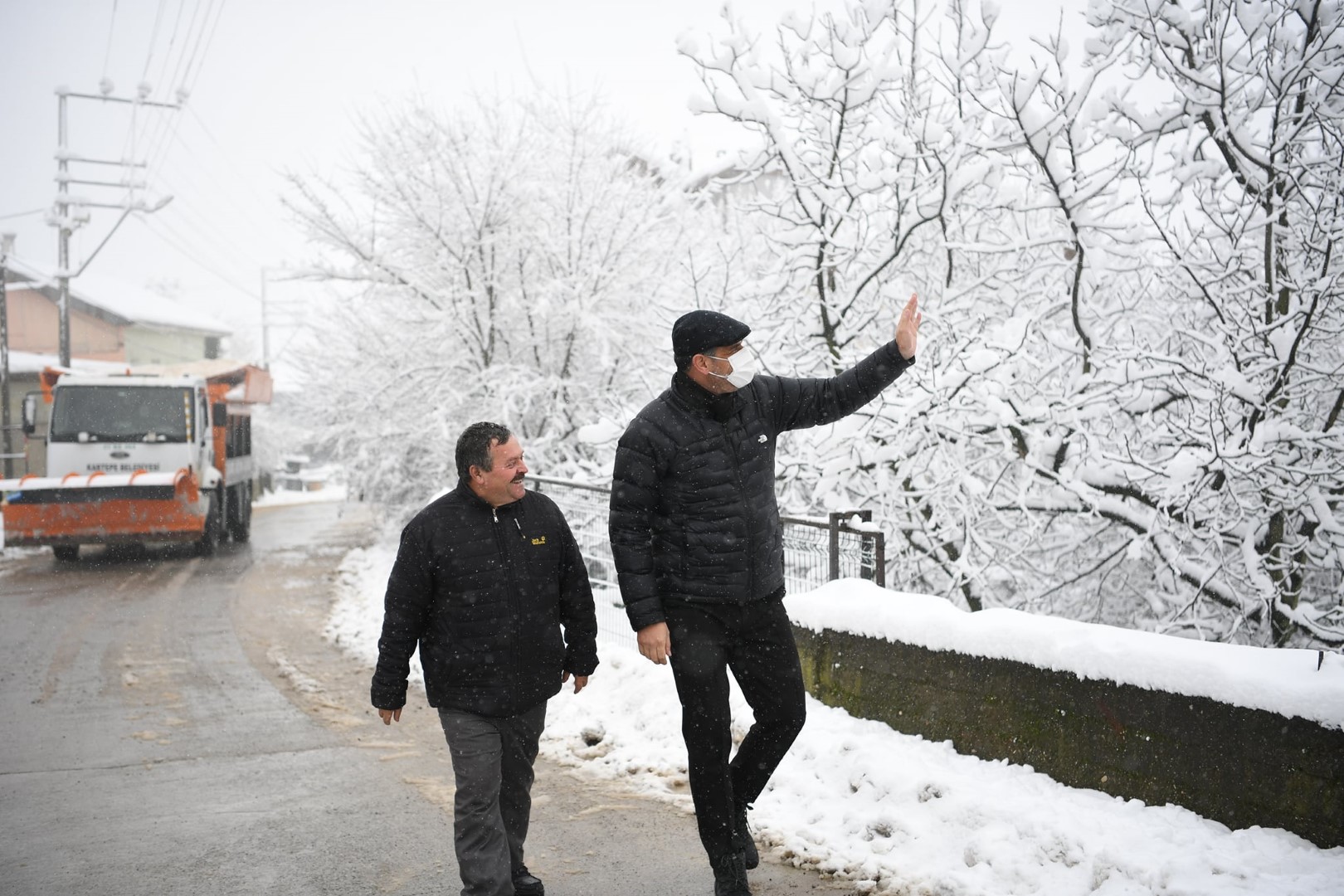 Tüm yurtta etkili olan kar yağışı Kartepe’de de yoğun bir şekilde etkisini gösterdi. Kartepe Belediye Başkanı Av.M.Mustafa Kocaman’ın öncülüğünde tüm ekipler ilçe genelinde yolların açık kalmasını sağladı. Yapılan çalışmaları Başkan Kocaman da yakından takip etti.