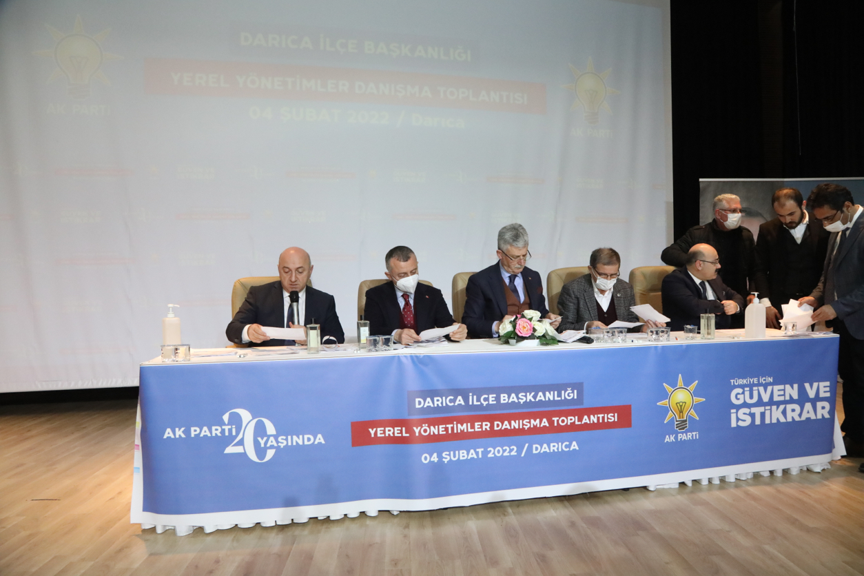 AK Parti Darıca İlçe Teşkilatı’nın düzenlediği Yerel Yönetimler Danışma Meclisi Toplantısı Adnan Menderes Kültür Merkezi’nde gerçekleşti. Saygı duruşu ve İstiklal Marşı’nın okunmasının ardından başlayan toplantıya AK Parti Kocaeli İl Başkanı Mehmet Ellibeş, AK Parti Kocaeli Milletvekili İlyas Şeker, Kocaeli Büyükşehir Belediye Başkanı Tahir Büyükakın, Darıca Belediye Başkanı Muzaffer Bıyık, AK Parti Darıca İlçe Başkanı Ufuk Acay ile birlikte diğer ilçe belediye başkanları ve diğer belediye başkanları, ilçe yöneticileri, meclis üyeleri ve çok sayıda teşkilat mensubu katıldı. Oldukça coşkulu geçen toplantının açılış konuşmasını yapan İlçe Başkanı Ufuk Acay, birlik beraberlik mesajları verdi. Danışma Meclisi’nde AK Parti İlçe Başkanı Ufuk Acay divan başkanlığını ve ilçe Kadın Kolları Başkanı Selma Gülenç, Gençlik Kolları Başkanvekili Efe Özkan ve İlçe Yöneticisi Hamza Doğan ise divan üyeliğini yaptı.