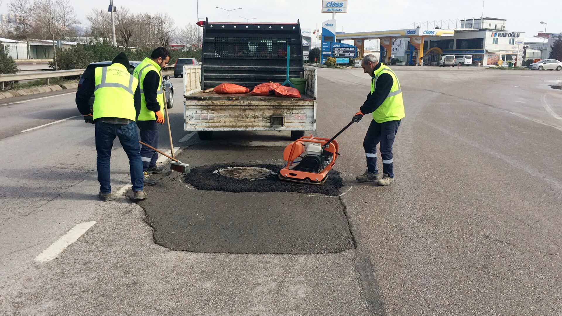 Kocaeli’nin tüm ilçelerinde ana arterler, cadde ve bulvarlarda yol ve kaldırımlarda oluşan çukur ve bozulmalar herhangi bir olumsuz durum oluşturarak araç ve yayalara zarar vermesin diye asfalt yama çalışması ile kaldırım parke yapım çalışmalarıyla onarılıyor. Trafiği de aksatmadan gerekli güvenlik önlemlerini alan Yol Bakım Timi, yama ve torba asfalt çalışması ile asfalttaki bozulmayı hızlı bir şekilde gidererek yolu kullanılabilir hale getiriyor.