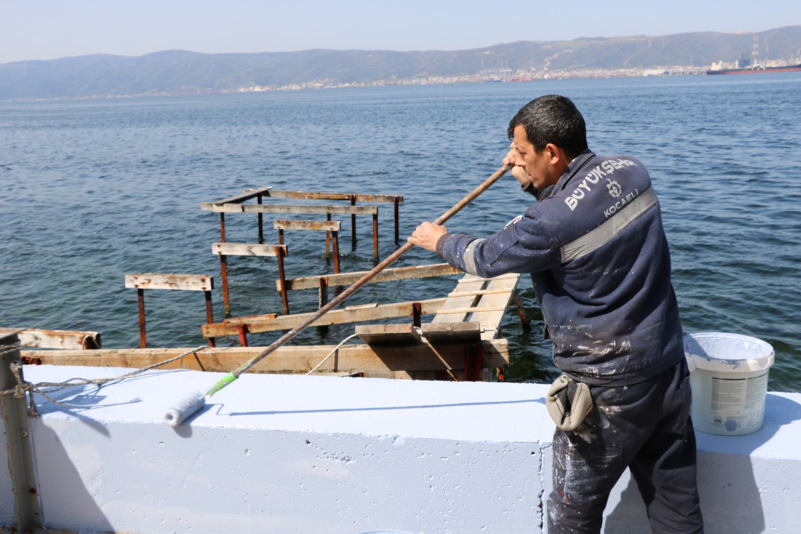 Kocaeli genelinde yaz bakım çalışmaları yürüten Büyükşehir Belediyesi Park ve Bahçeler Daire Başkanlığı ekipleri yıpranmış bank, kamelya ve tadilat gerektiren noktaların bakımını sağlıyor. Ekipler Halıdere sahilinde yıpranmış bulunan dalga kıran duvarlarını da boyadı. Bu çalışmayla sahil renklendi, daha güzel ve daha temiz bir hal aldı.