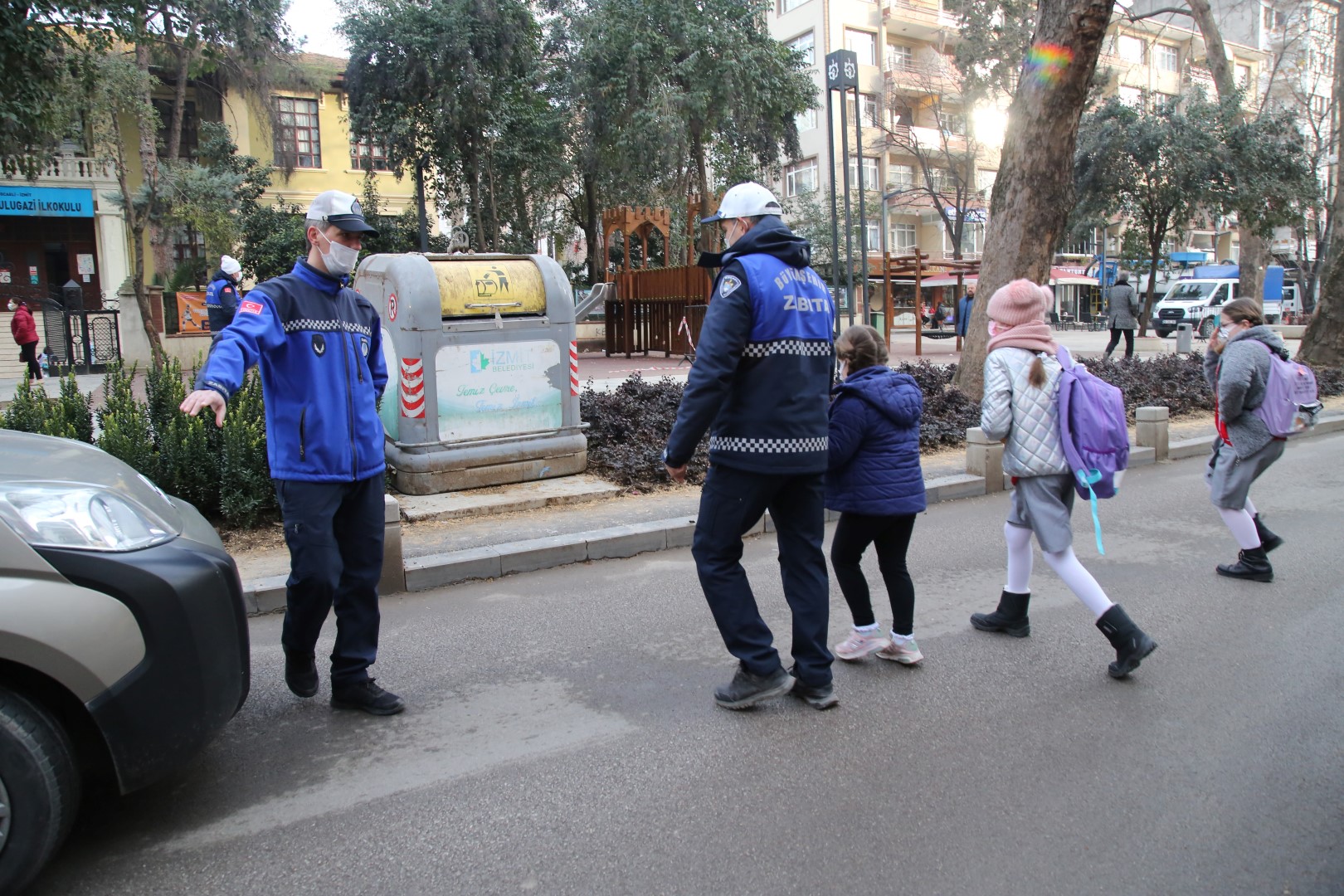 Kocaeli Büyükşehir Belediyesi Zabıta ekipleri, haftanın 5 günü İzmit Ulugazi İlkokulu ile İzmit ve Gebze’deki merkezi okulların önünde çocukların ve velilerin güvenliği için tedbir alıyor. Zabıta ekiplerinin bu çalışmasıyla öğrenciler güvende olurken, ailelerin de gönlü rahat ediyor. Ekipler hem servislerden, hem de velilerin özel araçlarından öğrencilerin güvenle inerek, okullarına geçmelerine yardımcı oluyor. Zabıtanın çocuklarını güler yüzlü karşılayıp, gerektiğinde ellerinden tutarak karşıya geçmesine yardımcı olmaları velilerin de takdirini topluyor. Büyükşehir Zabıtasının sevecen yaklaşımı hem velilerin, hem öğrencilerin, hem de okul yöneticilerinin güne mutlu başlamasını sağlıyor.