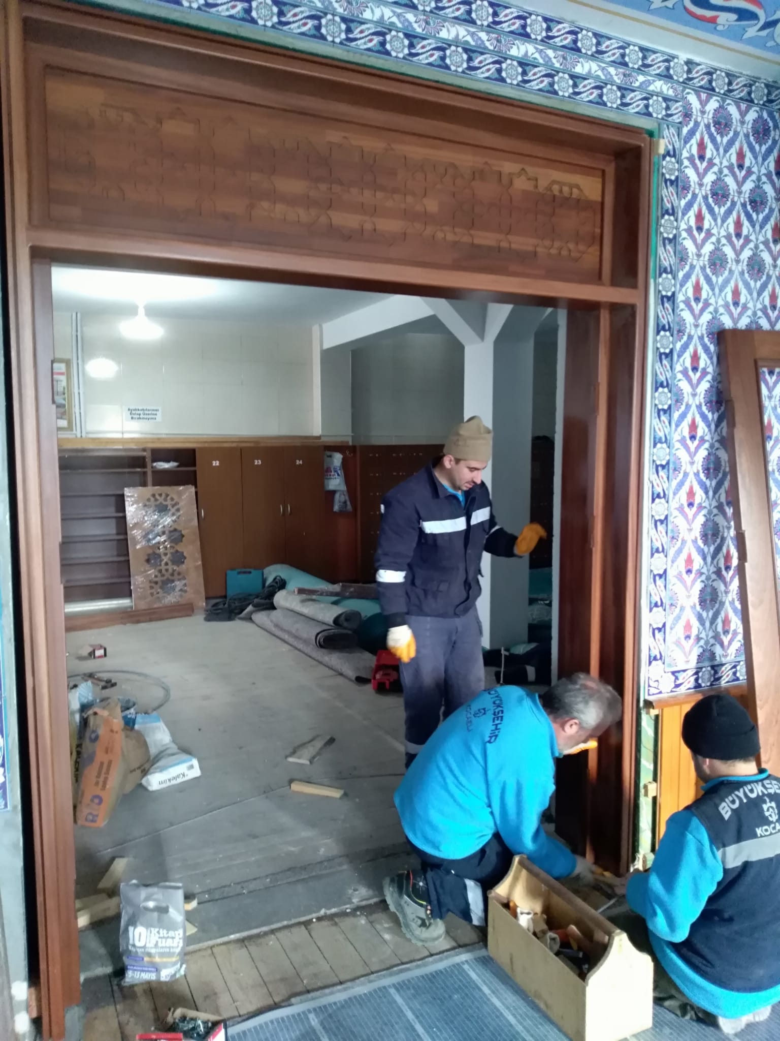 Camide oluşan hasarın ardından Büyükşehir’in A Takımı çalışmalarına başlamıştı. İlk olarak camide temizlik yapılmış, ardından elektrik tesisatı, alçıpan ve boya çalışmalarına geçilmişti. Park ve Bahçeler Dairesi’ne bağlı ekipler ise Yenidoğan Merkez Cami’nin 2 adet kapı ve merdiven korkuluklarını kendi atölyelerinden imal etti. Ekipler ardından her iki kapı ve merdiven korkuluğunun montaj işlemini tamamladı.