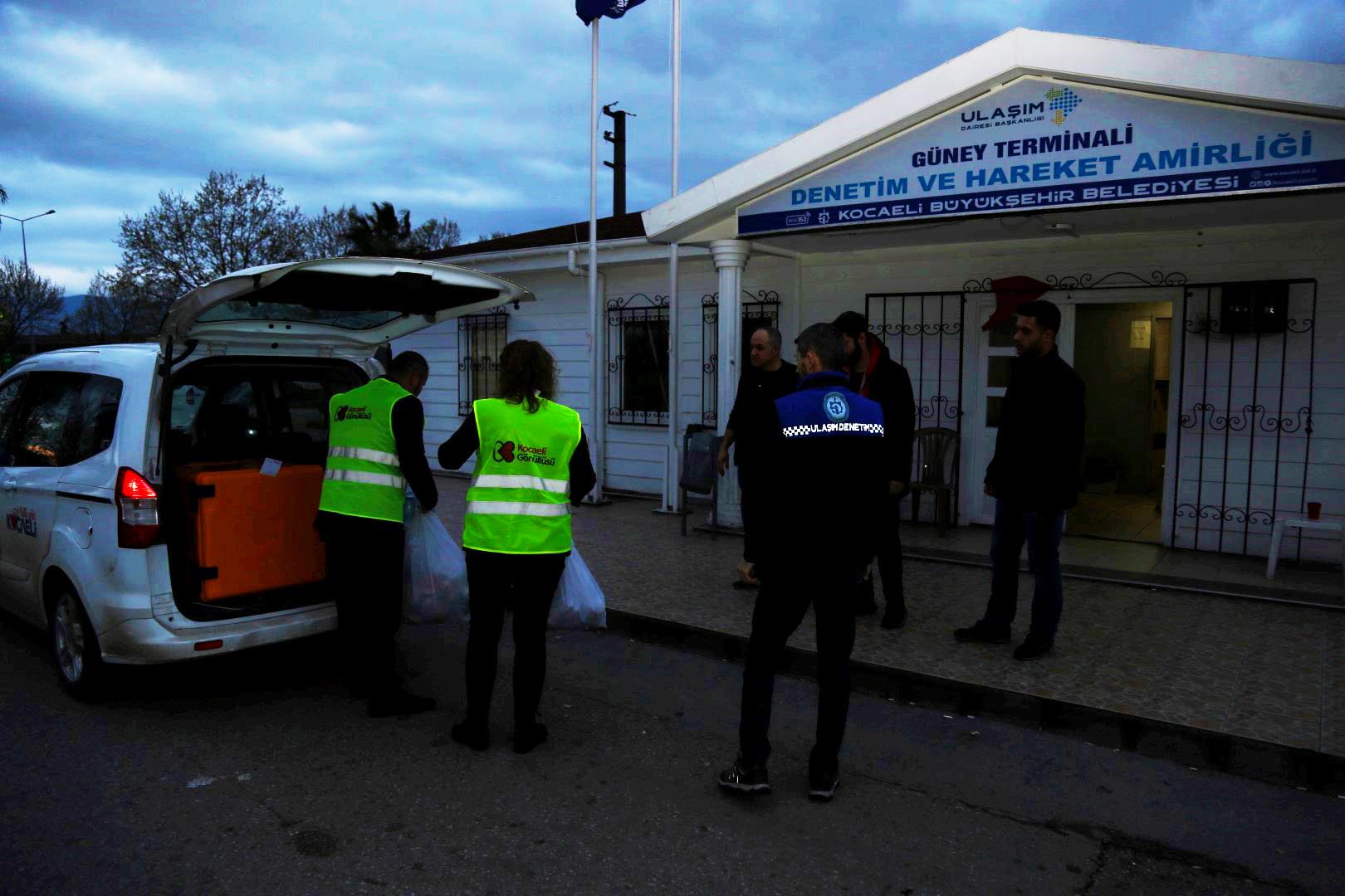 Kocaeli Büyükşehir Belediyesi, Ramazan ayında iftar saatinde çalışmak zorunda kalan esnafa yönelik iftarlık dağıtımlarına devam ediyor. Bu kapsamda İzmit’te görevli minibüs sürücülerine iftarlık dağıtıldı. Kocaeli Büyükşehir Belediyesi Dış İlişkiler Dairesi Başkanlığı Esnaf ve Sanatkar İşleri Şube Müdürlüğü, Ramazan ayında çalışan esnaflara yemek desteği veriyor. Bu kapsamda iftar saatinde çalışmak zorunda kalan minibüs sürücüleri için sıcak yemek hazırlandı. Büyükşehir ekipleri iftar saatine yakın İzmit Batı Terminali, Güney Terminali ve Kırsal Terminali gezdi. Terminalde bulunan minibüs sürücülerine ve terminalde görevli personele iftarlık sıcak yemek dağıtıldı. Sıcak yemek dağıtımdan memnun kalan minibüsçüler, Kocaeli Büyükşehir Belediye Başkanı Tahir Büyükakın’a teşekkür etti.