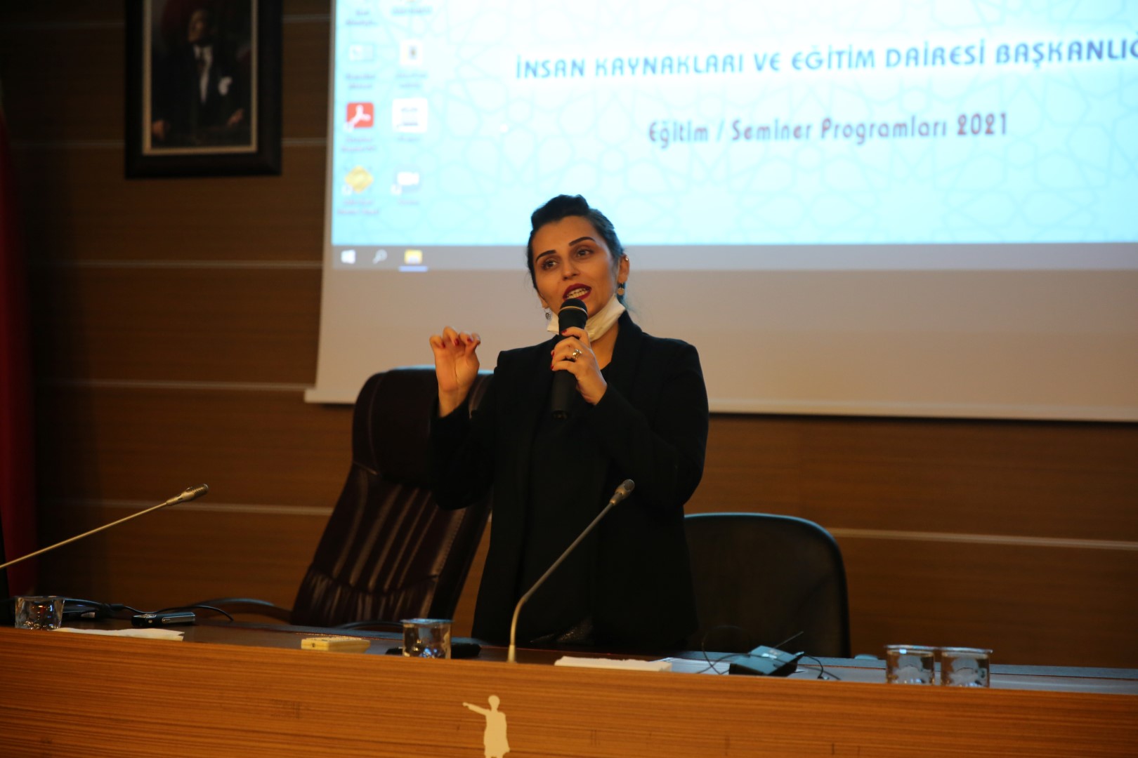 KO-MEK Usta Öğreticisi Sema Aytimur ise vatandaşlarla iletişim kurulurken mutlaka empati yapılması gerektiğine vurgu yaptı. Etkili iletişim kurmanın yöntemlerini anlatan Aytimur, “Kendimizi ilgilendiğimiz insanların yerine koyarak hareket etmeliyiz. Unutmamalıyız ki, bugün verdiğimiz hizmeti bizler de yarın alabiliriz” şeklinde konuştu.