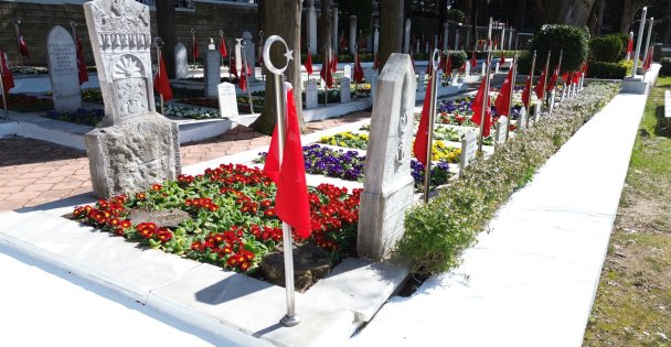 ŞEHİTLİKTE BAYRAKLAR YENİLENİYOR