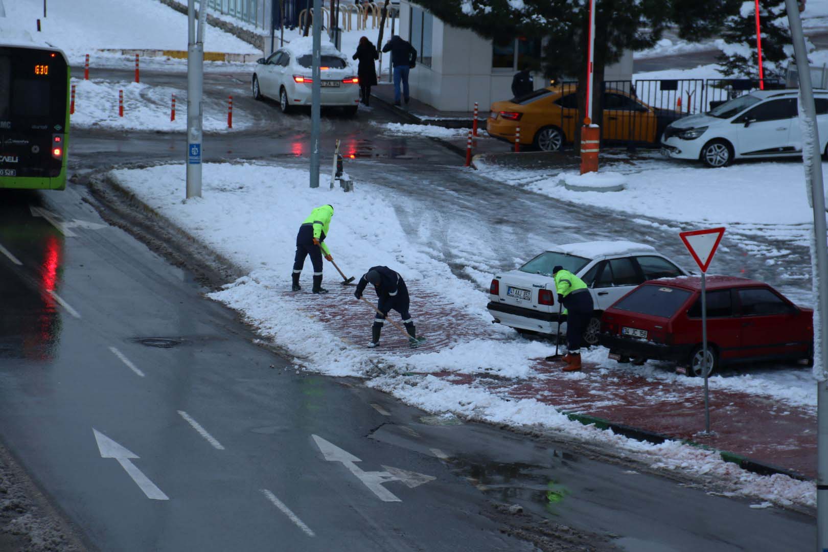 Bölgemizi etkisi altına alan yoğun kar yağışı nedeniyle şehirde olumsuzluk yaşanmaması, günlük hayatın kardan etkilenmemesi için gece gündüz çalışan Kocaeli Büyükşehir Belediyesi, yeni haftaya da kar mesaisiyle başladı. Geceden başlayan çalışmalar sabah da devam ederken yaya üst geçitleri, merdivenler, duraklar ve yürüyüş yolunda çalışmalar devam etti. Şehrin yüksek kesimlerinde ise yol açma, tuzlama ve küreme işlerine ara verilmedi.