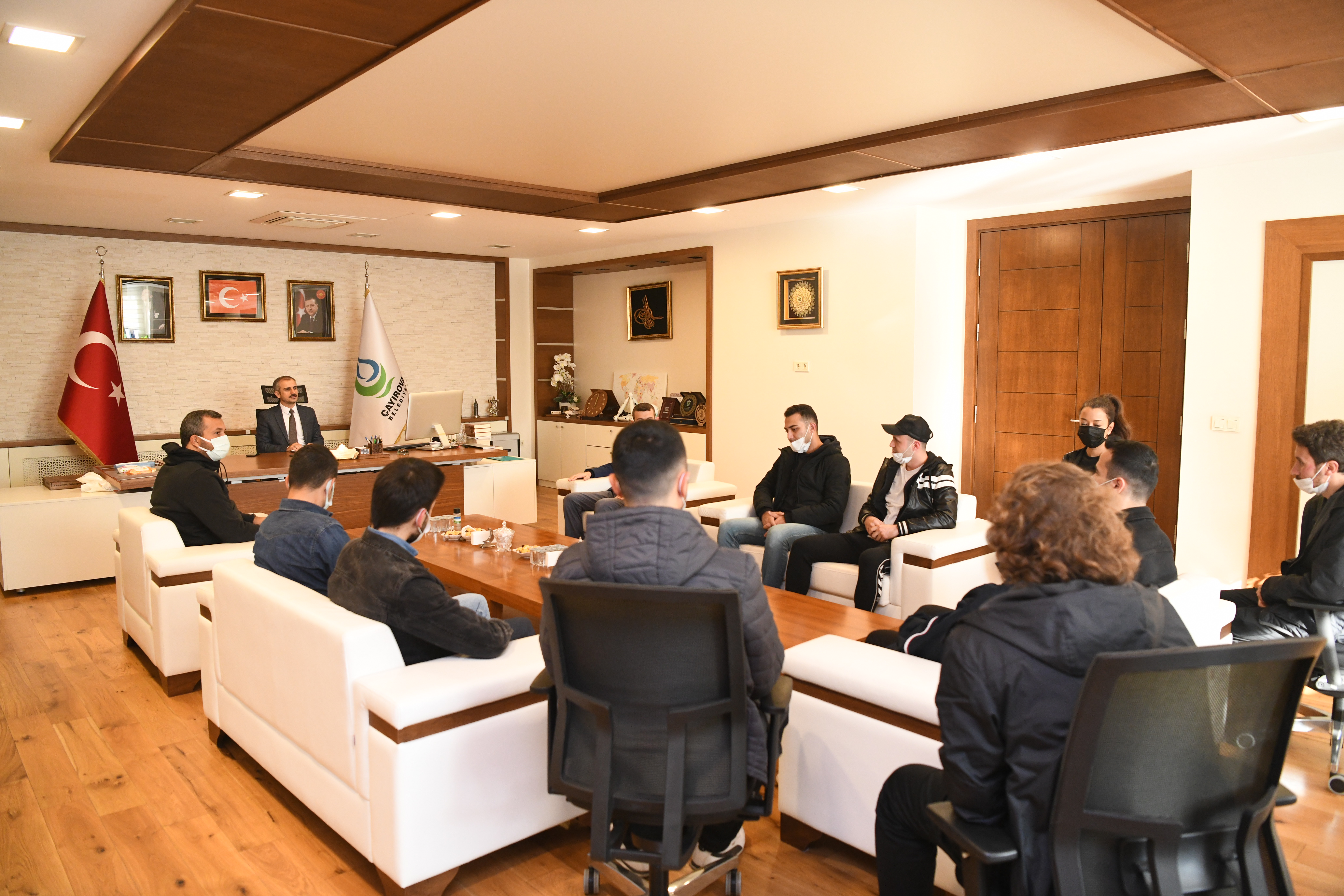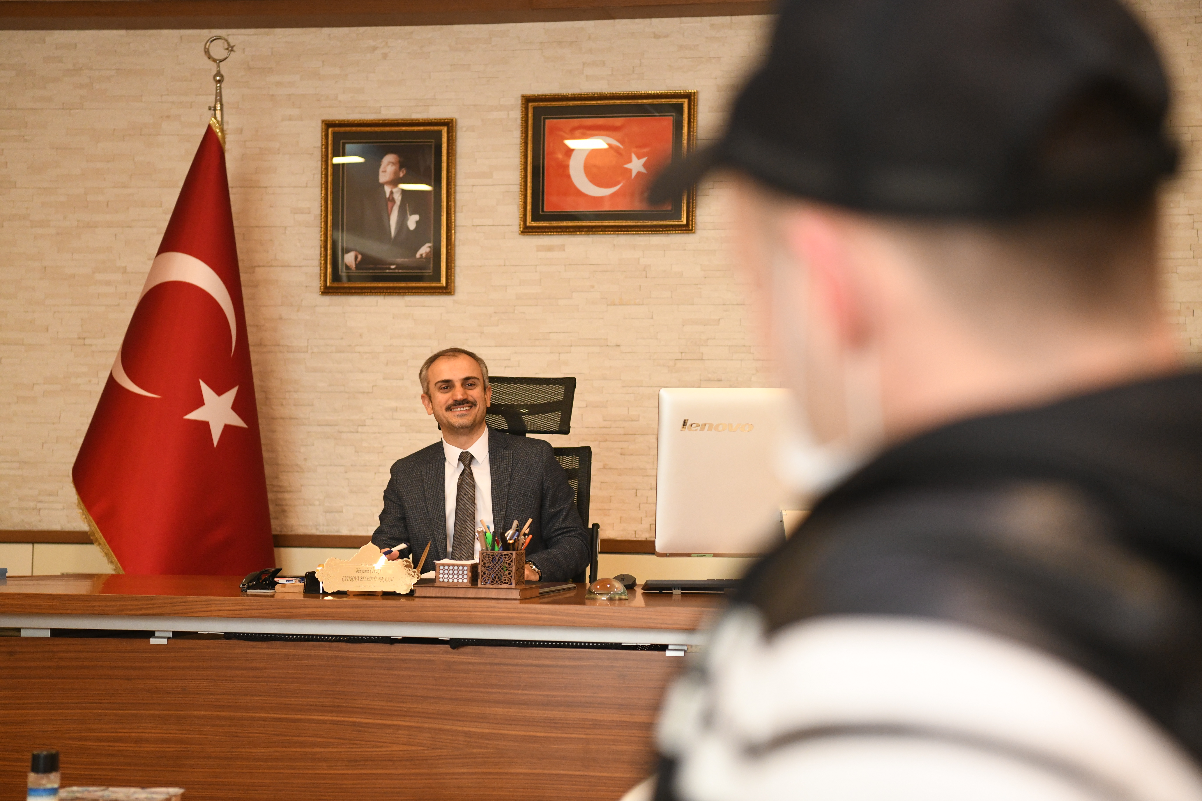 Polis Meslek Eğitim Merkezi (POMEM) ve Polis Meslek Yüksek Okulu'nda eğitim alacak 8 gençle tek tek tanışıp sohbet eden Başkan Çiftçi, 8 aylık eğitim sonrası polis olacak gençlere başarılar diledi.