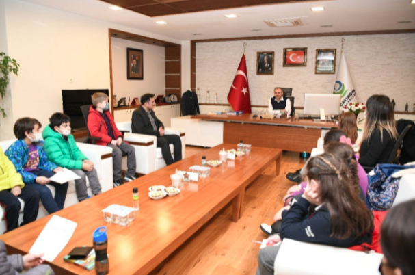 Çayırova Belediye Başkanı Bünyamin Çiftçi Özelsin Koleji müdür yardımcısı Adnan Torun, öğretmen Doğancan Yıldırım, Zeliha Ertürk ve gazetecilik kulübü öğrencilerini ağırladı.