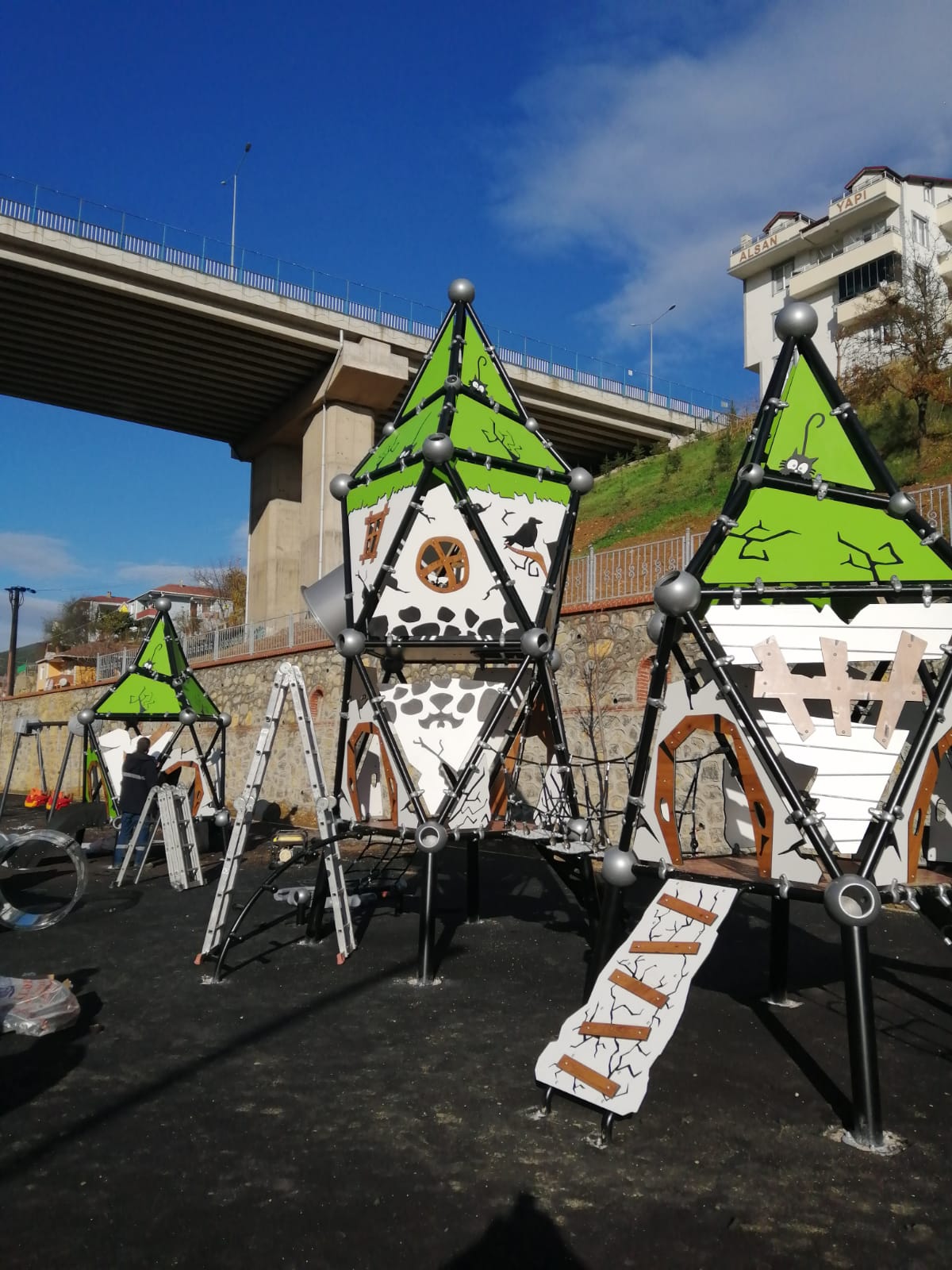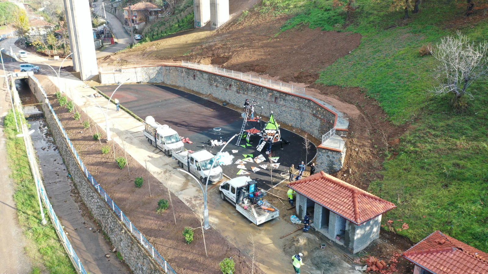 Kaba inşaatı tamamlanan tuvalet ve mescit binasının duvar, çatı ve kiremit işleri tamamlanırken ince işçilik çalışmalarına devam ediliyor. Çalışmalar dahilinde bisiklet ve yaya yollarının 650 metrelik kısmı tamamlandı, sulama ve aydınlatma işleri bitirildi. Önümüzdeki günlerde çocuk oyun grubunun montajı yapılacakken yürüyüş yolunun çevresine ağaçlandırma ve peyzaj çalışması gerçekleştiriliyor.