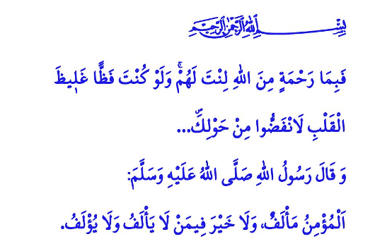 Cenâb-ı Hak Kur’an-ı Kerim’de Peygamberimize hitaben şöyle buyurmaktadır: “Allah’ın rahmeti sayesinde sen onlara karşı yumuşak davrandın. Eğer kaba, katı yürekli olsaydın, onlar senin etrafından dağılıp giderlerdi…”