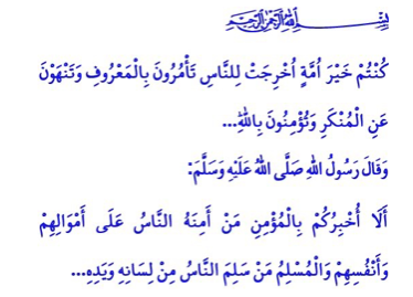 Yüce Rabbimiz Kur’an-ı Kerim’de şöyle buyuruyor: “Siz, insanlar için ortaya çıkarılmış en hayırlı ümmetsiniz. İyiliği emredersiniz, kötülükten alıkoyarsınız ve Allah’a inanırsınız...”