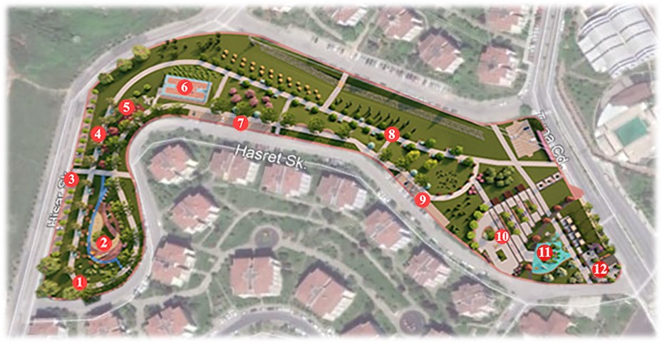 Hayata geçirilecek olan parkta yetişkin ve çocuklar için birçok alan oluşturulacak. Bu çerçevede 400 metrekare çocuk etkinlik alanı, 850 metrekare piknik alanı, 100 metrekare fitness spor alanı, 400 metrekare çok amaçlı spor sahası, 4 bin metrekare meydan ve oturma mekanları, 380 metrekare çocuk oyun alanı 110 metrekare kafe, mescit ve tuvalet olarak değerlendirilecek. Ayrıca proje kapsamında vatandaşların araçlarını rahat bir şekilde park edebileceği 71 araçlık otopark inşa edilecek.
