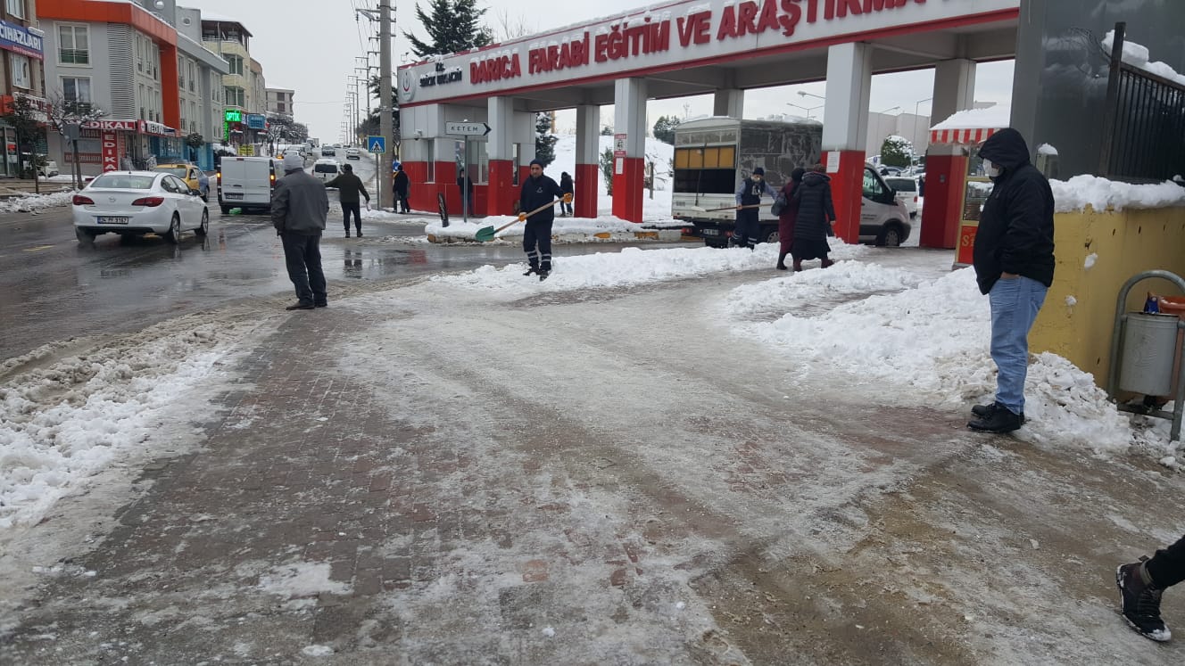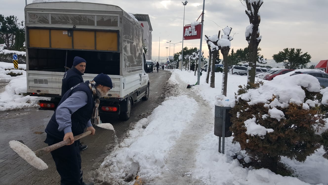 Öte yandan hastane, okul, ibadethane ve kamu kurumlarının çevresinde de kar küreme ve tuzlama çalışmalarını sürdüren Darıca Belediyesi, telefonla ve sosyal medya aracılığıyla vatandaştan gelen taleplere de anında müdahale ediyor. Karla mücadelede ilk günden itibaren vatandaşların yanında olan Darıca Belediyesi, ana caddelerin yanı sıra ara sokaklarda da gelen talepleri anında çözüme kavuşturmak adına tuzlama ve küreme çalışması yaparak vatandaşların mağduriyetini gideriyor.