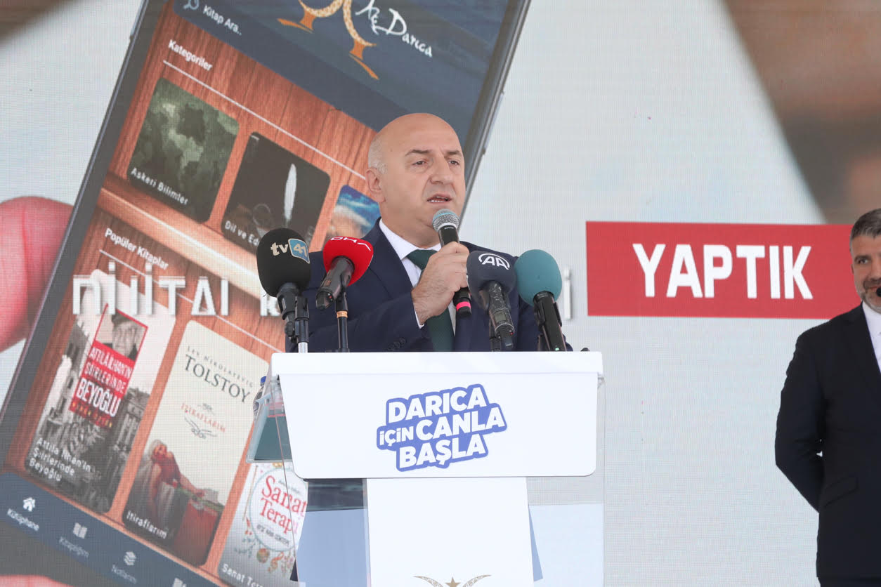 İlçeye kazandırılacak proje için GTO Başkanı Nail Çiler’e teşekkür eden Darıca Belediye Başkanı Muzaffer Bıyık, “İçerisinde gerçekten her metrekaresinde insan olan, insana dokunan muhteşem bir proje gerçekleştirdik. Vatandaşlarımızın menfaatiyle, güzel işlerde kullanılmasını rabbimden niyaz ediyorum. Alt katlarında büyük bir aşevimiz var, yemekhanemiz var. Burası aynı zamanda taziye salonu olarak da kullanılabilecek bir alan. Alt katlarda AFAD kurtarma merkezimizin bir araç deposunun olduğu bir bölge. Engellilerimiz için bir yaşam merkezimiz var, bir sosyal marketimiz var. İçerisinde her gün kan almaya müsait bir Kızılay hizmet binası ve çok muhteşem bir kütüphane, kitap kafe gibi bir konsepti içerisinde barındırıyor. Aynı zamanda da 270 kişilik bir konferans salonuyla beraber bir kompleksi hizmete açıyoruz. Ticaret erbaplarıyla, sanayicilerle, hayırseverlerle, yatırımcılarla ortaklaşa yaptığımız işlerin bir bereketi olduğu kanaatindeyim. Bu proje de onlardan bir tanesi. Aşevlerimizle, sosyal marketimizle, engelliler yaşam alanımızla, kütüphanemizle, konferans salonumuzla, Kızılay hizmet binamızla ne yaş farkı gözetiyor ne de fakir, zengin gözetiyor. Her kesime hizmet edecek bir komplekse dönüştü" dedi.