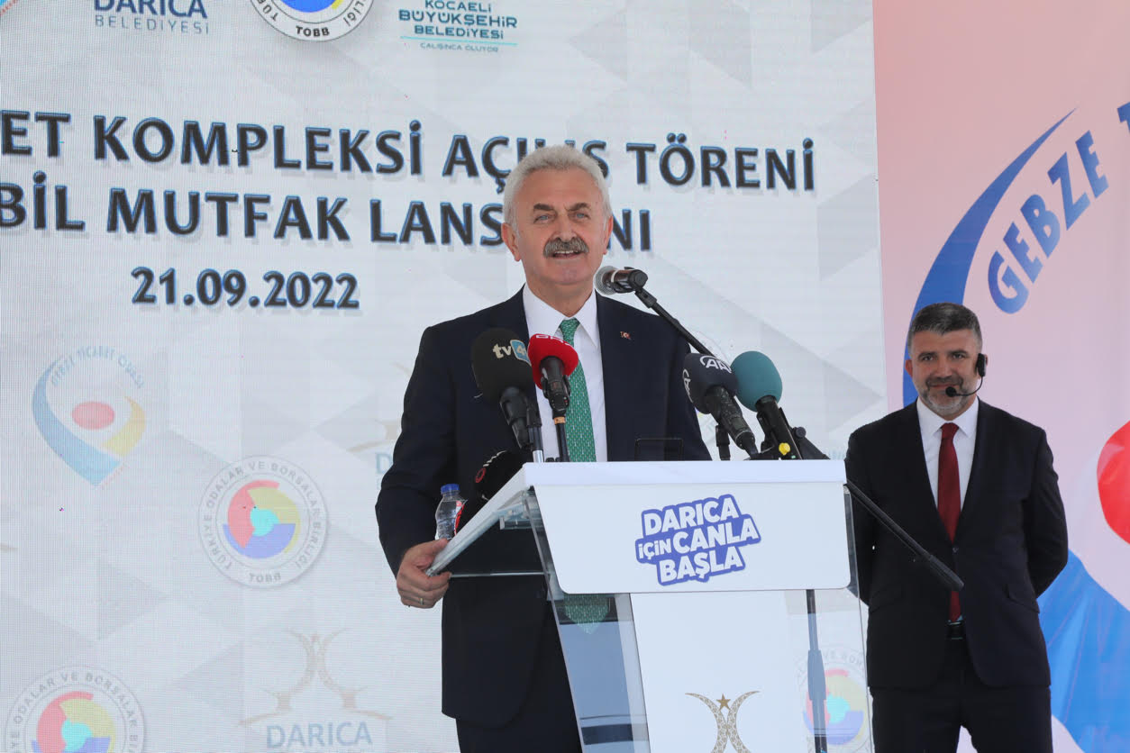 Saygı duruşu ve İstiklal Marşı’nın ardından başlayan açılış töreninde ilk olarak GTO Başkanı Nail Çiler konuşma yaptı ve Darıca’ya önemli bir eser kazandıracakları için mutlu olduklarını ifade etti. Darıca Belediyesi ile işbirliği içinde güzel bir hizmeti hayata geçirdiklerini ifade eden Çiler, Belediye Başkanı Muzaffer Bıyık’a desteği için teşekkür ederek “Bizler için çok önemi ve anlamı olan bir kompleksi Darıca’ya ve bölgemize kazandırdık. Burada bir günde 120 bin kişiye yemek çıkarabilecek mobil aşevimiz var. Ayrıca günde 5 bin kişiye yemek ulaştıracak ayrı bir mobil aş evimiz var. Ayrıca deprem aracımız var. Amacımız bu bölgeye hizmet etmek. Burada taziye evi aşevi var. Sağolsun paydaşımız, ortağımız Darıca Belediyesi burada 365 gün aşevinde ihtiyaç sahiplerine yemek verecek. Buraya sürekli kan alım merkezi açıyoruz. Darıca Belediyesi proje çizdiriyor, 650 metrekarelik halk kütüphanesi kazandırıyoruz. Eğitim ve konferans salonları olacak. Değerli başkanımızla Darıca’yı pilot bölge seçtik, her mahallemizde afet gönüllüleri kuracağız. Bütün bunları işbirliği içinde yapıyoruz. Bize destek olan Darıca Belediyesi’ne ve değerli başkanımıza teşekkür ediyorum” diye konuştu.