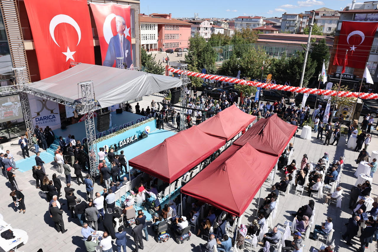 Darıca Belediyesi ve Gebze Ticaret Odası işbirliği ile Darıca’ya önemli bir yatırım kazandırıldı. Toplam inşaat alanı 3 bin 615 metrekare olan Darıca Hizmet Kompleksi için görkemli bir temel açılış töreni düzenlendi. Darıca’ya önemli bir değer katacak ve büyük bir eksikliği giderecek Hizmet Kompleksi’nin açılış törenine TOBB Başkanı Rıfat Hisarcıklıoğlu, Kocaeli Büyükşehir Belediye Başkanı Tahir Büyükakın, Darıca Belediye Başkanı Muzaffer Bıyık, Gebze Ticaret Odası Başkanı Nail Çiler, AK Parti Kocaeli Milletvekili Cemil Yaman, Darıca Kaymakamı Yüksel Kara ile birlikte ilçe belediye başkanları, siyasi parti temsilcileri, sanayici ve işadamları, sivil toplum kuruluşu temsilcileri ve çok sayıda davetli katıldı.