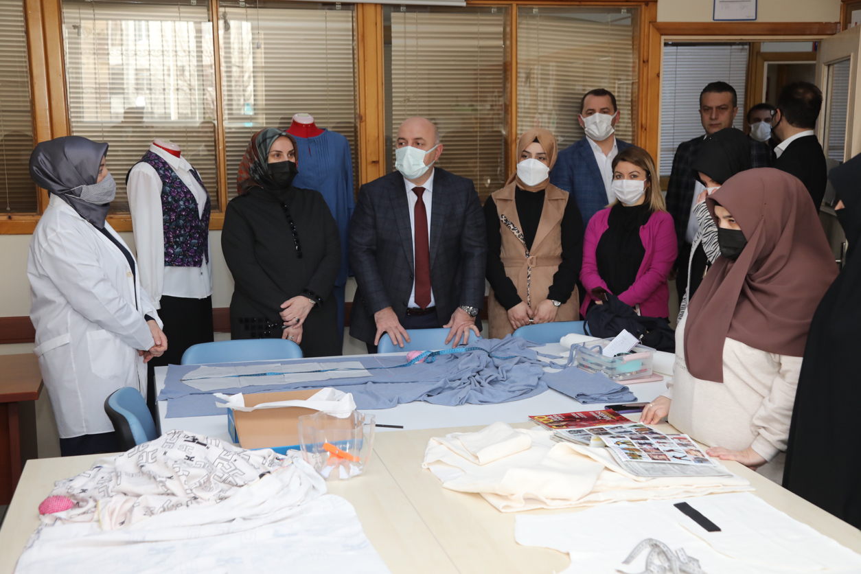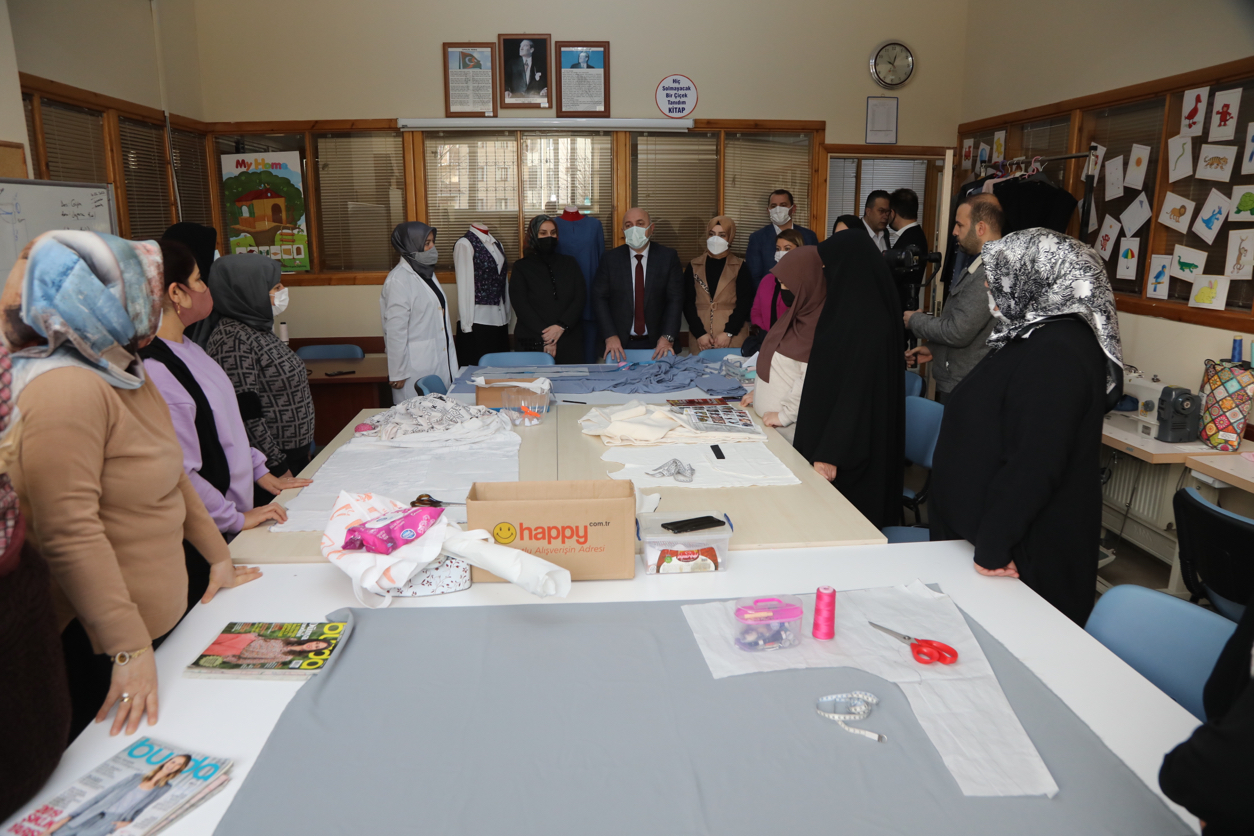 . Eşiyle birlikte kursları ziyaret eden Belediye Başkanı Muzaffer Bıyık, kadınların meslek öğrenirken ekonomik kazanç da sağlayacakları bir sistem oluşturacaklarını söyledi.