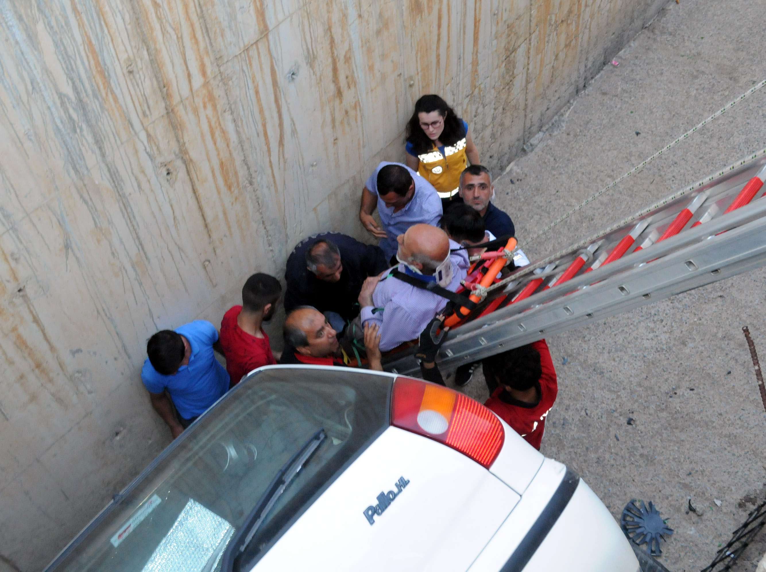Yaralanan baba ve oğlu, su kanalına indirilen sedye iple bağlanarak, kurulan merdiven üzerinden yukarıya çıkarıldı.