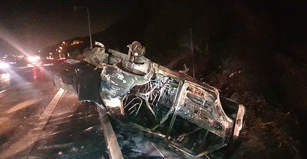 Kazada yaralanan sürücü ile otomobilde bulunan Zümrüt, Mehmet ve Hamide İnce, bariyerleri aşarak ters vaziyette durduktan sonra alev alan araçtan kendi imkanlarıyla çıktı.