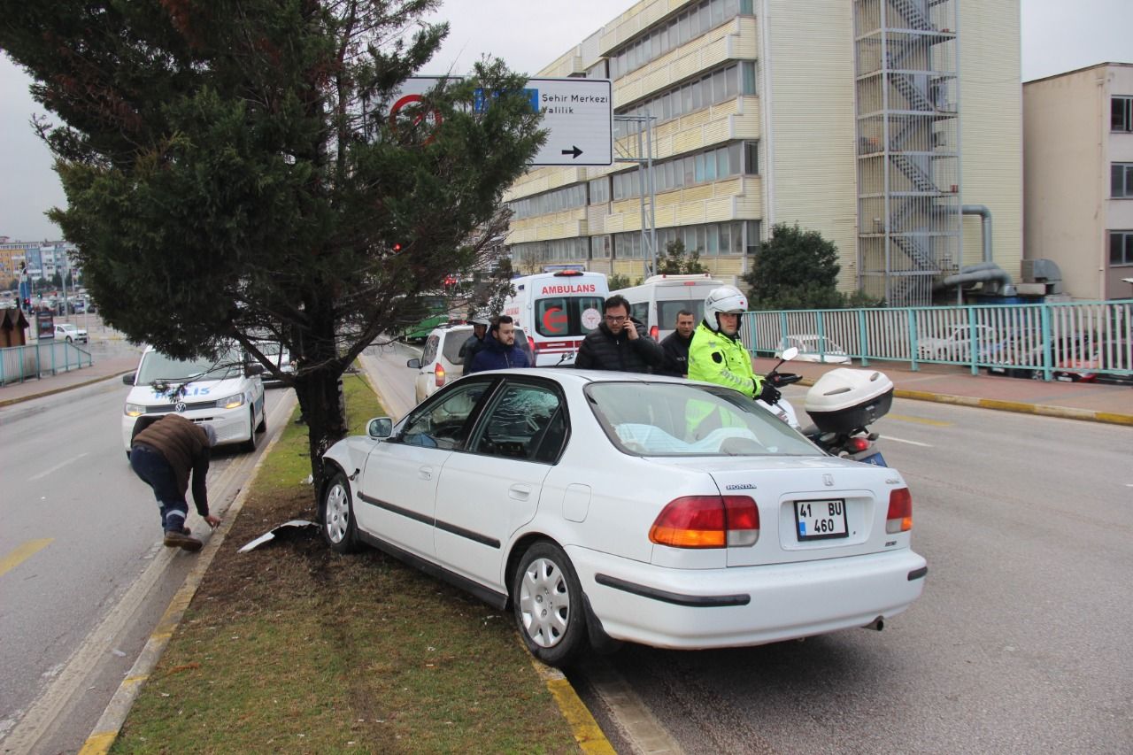 Kaza, İzmit 'e bağlı Gazanfer Bilge Bulvarı üzerinde meydana geldi. Edinilen bilgiye göre, A.V. idaresindeki 41 BU 460 plakalı Honda marka otomobil, sürücüsünün direksiyon hakimiyetini kaybetmesi sebebiyle ağaca çarptı. 112 Acil Çağrı Merkezi’ne bildirilen ihbar üzerine olay yerine sağlık ve polis ekipleri sevk edildi. Otomobilin sürücüsü A.V. ve yolcu olarak H.K., sağlık ekiplerince yapılan ilk müdahalelerinin ardından Seka Devlet Hastanesi’ne kaldırıldı. Otomobilin ön camından yola dökülen cam parçaları ise belediye ekipleri tarafından temizlendi. Polis ekipleri kazayla ilgili inceleme başlattı