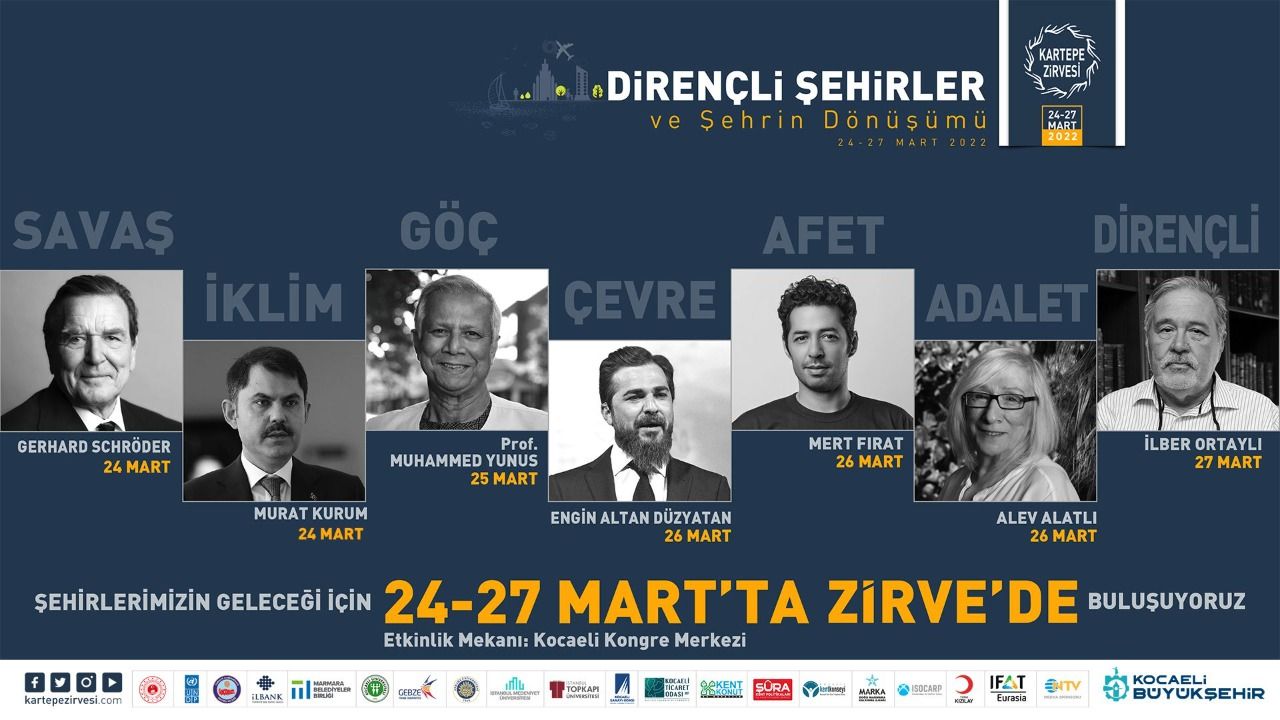 Dünyanın önemli düşünce zirveleri arasında yer almayı başaran Kartepe Zirvesi, 24-27 Mart tarihlerinde kapılarını dördüncü kez açıyor.Kocaeli Büyükşehir Belediyesi'nin öncülüğünde üniversiteler ve sivil toplum kuruluşlarının paydaşlıkları ile düzenlenen zirvenin 2022 yılı teması ’Dirençli Şehirler ve Şehrin Dönüşümü’’ olarak belirlendi. Zirvenin tüm detayları www.kartepezirvesi.com adresinde yer aldı.