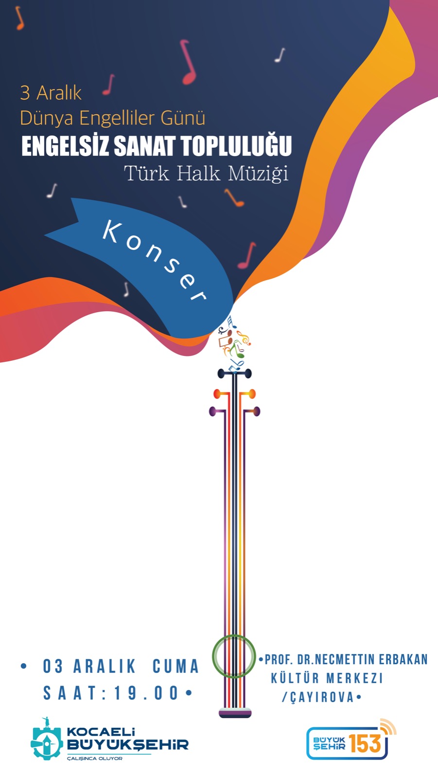 Kocaeli Büyükşehir Belediyesi’nin Engelsiz Sanat Topluluğu korosu 3 Aralık Dünya Engelliler Günü nedeniyle Çayırova Prof. Dr. Necmettin Erbakan Kültür Merkezinde konser verecek. Ücretsiz olacak konser halkımızın katılımına açık olarak düzenlenecek.