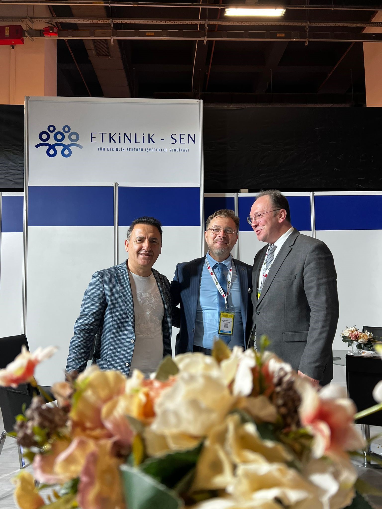 Etkinlik Sen Genel Başkan Ali Koray Özandaç, İstanbul İl Başkanı Mustafa Bozkurt ve sendika yöneticileri bir araya geldi. 21 Şubat haftasının "Etkinlik İşverenleri ve Emekçileri Haftası" olarak kutlanılmasını isteyen Etkinlik Sen Genel Başkan Ali Koray Özandaç, "Tüm Etkinlik Sektörü İşveren Sendikası (Etkinlik-Sen) olarak sektör temsilcilerimizin diğer meslek türlerinde olduğu gibi belirli bir gün ve haftada hatırlanmasını ve bu özel günlerinin resmi olarak da kutlanmasını yönetim kurulumuz olarak talep etmekteyiz. Üyelerimiz arasında yapmış olduğumuz çalıştay ve istişarelerde, pandemi ile doğal afetler sebebiyle sıkıntılı günler geçiren, iş ve kazanç kaybı yaşayan hizmet emekçileri ve etkinlik sektörünün temsilcilerinin, hatırlandıklarını ve kendilerine değer verildiğinin farkına varacakları bir moral ve motivasyon desteğine ihtiyaçları olduğunu tespit ettik. Etkinlik sezonunun ülke genelinde mart ayı itibarıyla başlaması dolayısıyla, sezon öncesi şubat ayının son haftası 21 Şubattan İtibaren bir hafta boyunca tüm yurdumuzda çeşitli kültür sanat etkinlikleri, gezi ve ziyaretler, proje paylaşımları, sunum ve eğitimler ile haftayı geçirmek istiyoruz. Yaptığımız tetkiklere göre takvim belirli gün ve haftalar açısından da müsait görünmektedir" dedi.