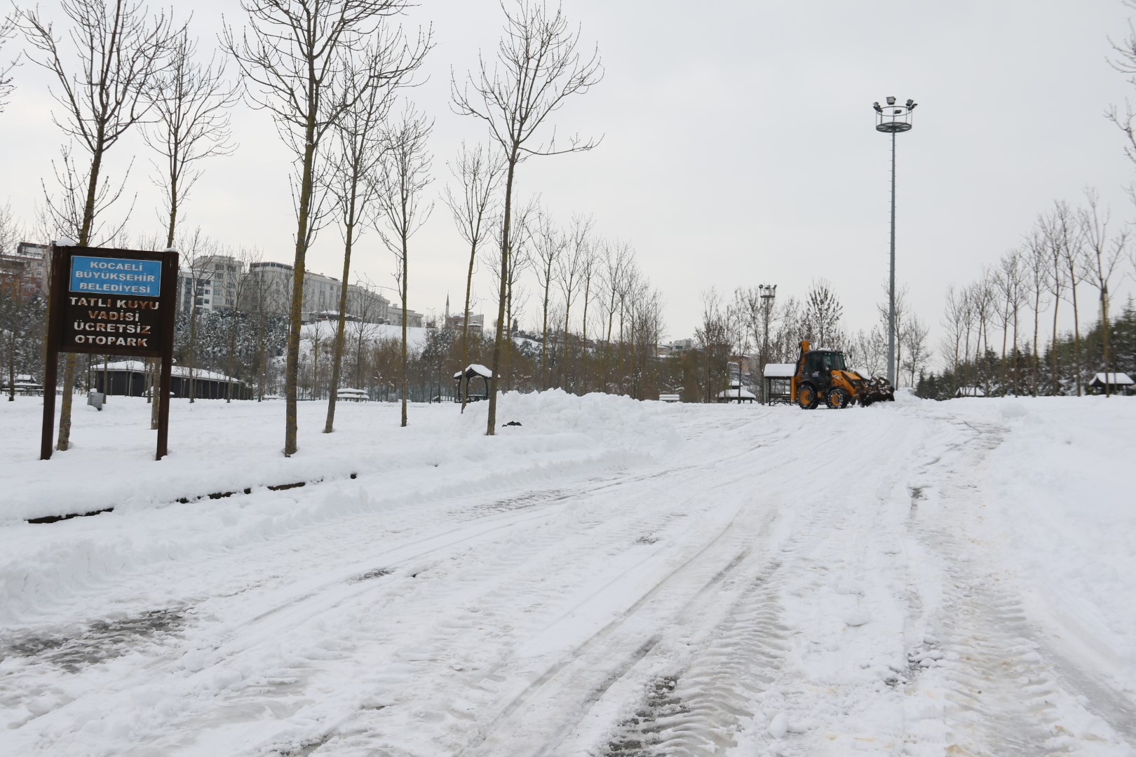 Kocaeli genelinde etkili olan kar yağışı sonrasında özellikle parkların otopark alanlarında biriken karlar, Kocaeli Büyükşehir Belediyesi ekiplerince temizleniyor. Kar temizleme çalışmaları Büyükşehir’in Gebze bölgesinde sorumlu olduğu parklarda da devam ediyor. Kar yağışının dinmesiyle birlikte parklara hücum eden çocuklar kartopu oynuyor, naylon poşetlerle kayarak gönüllerince eğleniyor. Bu kapsamda Büyükşehir ekipleri, anne ve babaların çocuklarını kendi özel araçlarıyla da rahatça parka getirmelerini sağlamak amacıyla parkların otoparklarında biriken karları temizliyor.