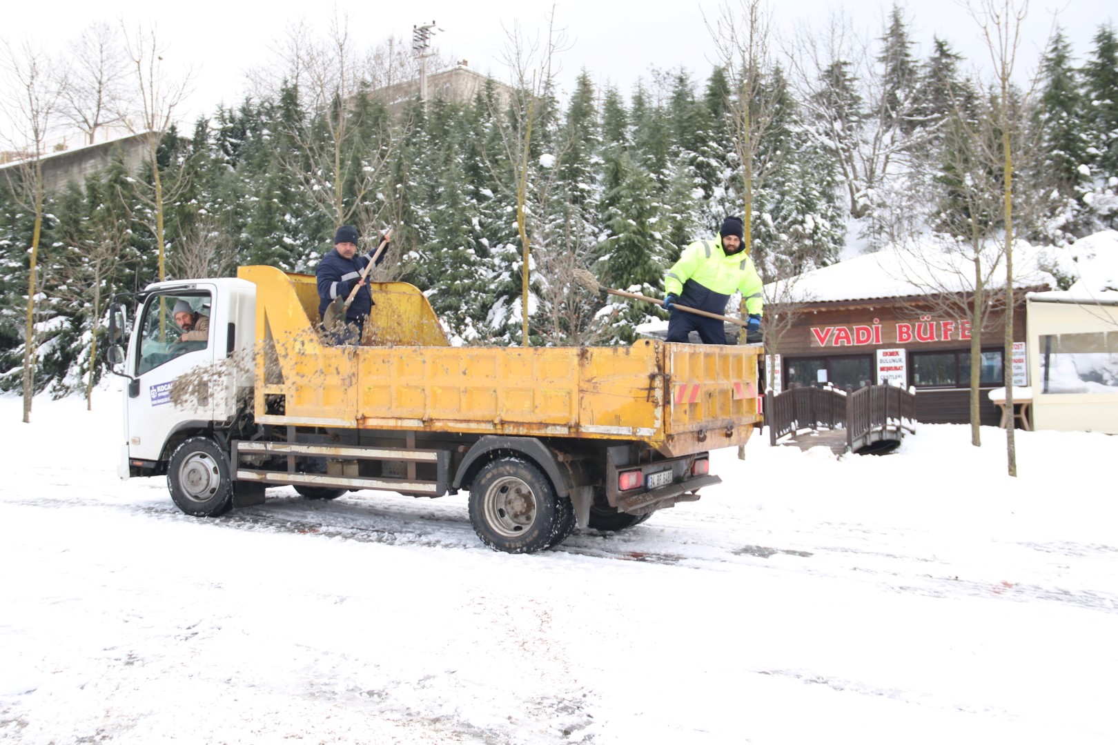 Otoparkta biriken karlar ilk olarak iş makinesinin yardımıyla temizleniyor. Temizlenen otopark alanına Park ve Bahçeler Dairesi Başkanlığı ekipleri buzlanmaya karşı tuz döküyor. Böylelikle araçların herhangi bir tehlikeye sebebiyet vermeden otoparka park edilmeleri sağlanıyor. Ayrıca kaldırımda biriken karları ve buzları temizleyerek vatandaşların güvenli yürümeleri için çaba sarf eden ekipler, Büyükşehir’e ait Gebze bölgesindeki parklarda yoğun bir mesai harcıyor.