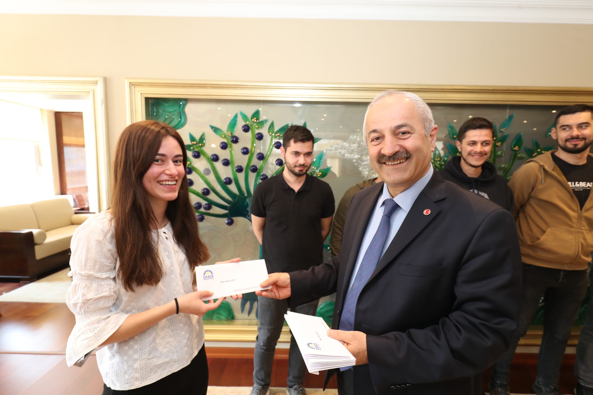 Gebze Belediye Başkanı Zinnur Büyükgöz, sponsorluk desteği verilen GTÜ PUSAT takımını oluşturan öğrencileri makamında ağırladı. Tebriklerini bir kez daha ilettiği genç öğrencilerle bir süre hasbihal eden Gebze Belediye Başkanı Zinnur Büyükgöz yaptığı açıklamada, “Amerika’da bizim gençlerin rüzgarı esecek. Gençler bizim gururumuz. Başarılı genç kardeşlerimizin her zaman yanındayız. Ülkemizi temsil edeceğiniz bu önemli yarışmada sizlere başarılar diliyorum. Güle güle gidin başarıyla Gebze’mize yurdumuza dönün inşallah” dedi. Açıklamanın ardından Başkan Büyükgöz Amerika’ya gidecek GTÜ Havacılık ve Uzay Kulübü’nün GTU-PUSAT takımını oluşturan öğrencilere uçak biletlerini takdim etti.