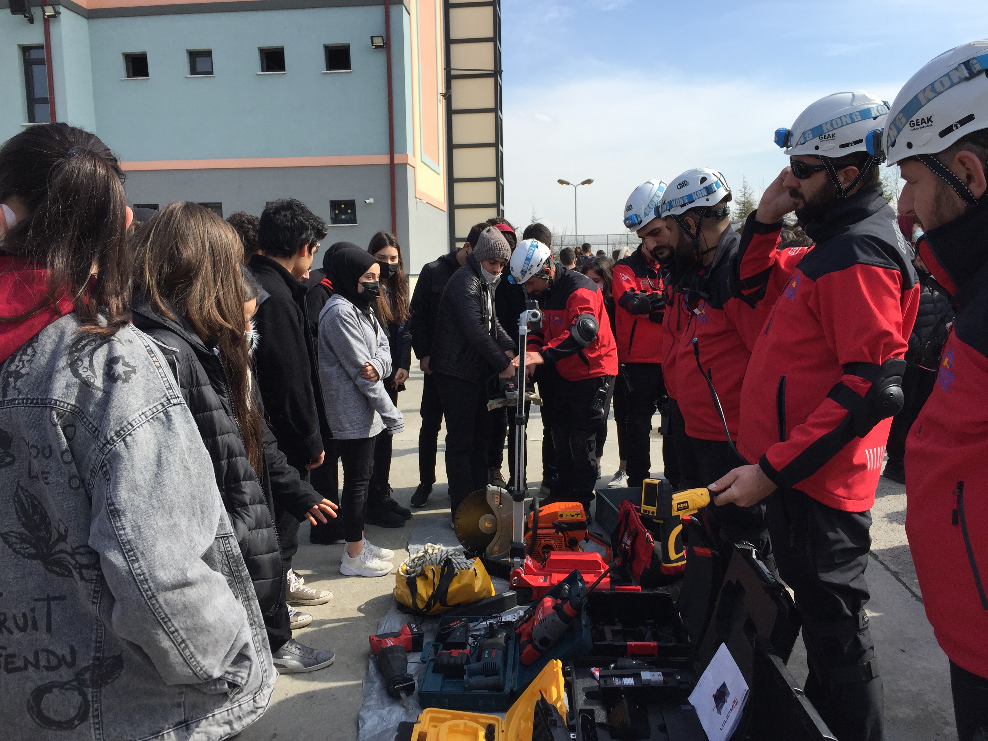 Tatbikatta öğrenciler Arama Kurtarma araç gereçlerini, itfaye ekipmanlarını inceledi. Gebze kaymakamı Mustafa Güler öğrencilere sizler bizlerin geleceğimizsiniz açıklmasında bulunurken ürettğimiz teknolojik araçları ileriye doğru taşımak sizler sayesinde olacaktır açıklamasında bulundu.