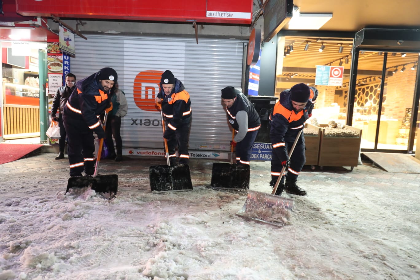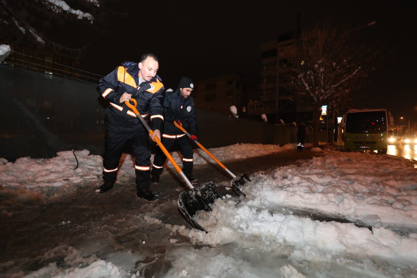 Gebze Belediyesi kar ekiplerinden tam kadro gece mesaisi.