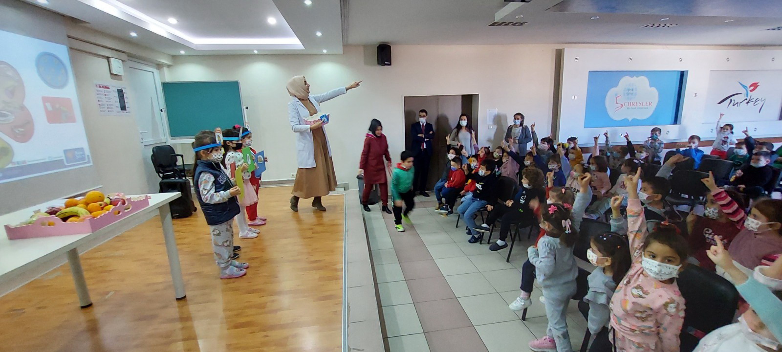 Eğitimde ayrıca besin grupları, sağlığa yararlı ve zararlı besinler, kahvaltı ve diğer öğünlerin önemi de anlatıldı. Bu bağlamda çocuklara gıda güvenliği bilinci ile beraber evde yapılan yemeklerin yenmesi ve yemek seçilmemesi, açıkta satılan yiyeceklerin tüketilmemesi, cips, bisküvi, kola, şeker tipi gıdalardan uzak durma farkındalığı kazandırıldı.