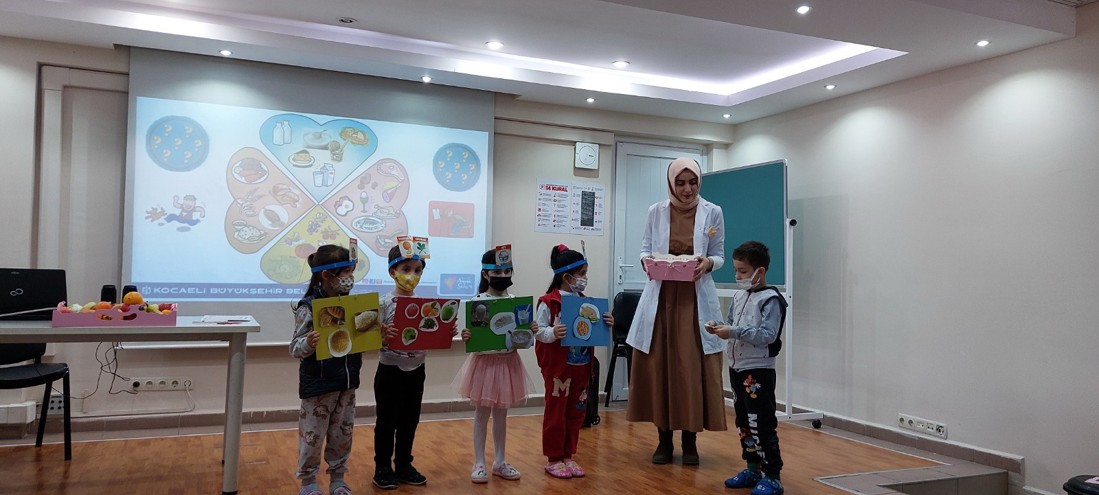Kadın ve Aile Hizmetleri Şube Müdürlüğü’nün ‘Anne Şehir Sağlıklı Yaşam’ programı kapsamında düzenlenen eğitim okulun konferans salonunda verildi. Obezitenin açmış olduğu sağlık sorunları, okul öncesi dönemde sağlıklı beslenme ve sağlıklı beslenme alışkanlıklarının kazandırılması gibi önemli konuların işlendiği eğitim, bilgilendirici ve bir o kadar da eğlenceli geçti. Oyunlarla anlatım, soru sorma, konu ile ilgili etkinlik yapma gibi yöntemler, öğrencilerin eğitimi daha iyi kavramasını sağladı. Sağlıklı beslenmeye yönelik şarkı ve videolarla desteklenerek gerçekleştirilen eğitimde Gebzeli çocuklar, besinler, besin grupları, vitaminler, kalsiyum, demir, diş sağlığı, sağlığa zararlı besinler, doğru el yıkama ve kahvaltının önemi gibi konular hakkında da bilgi sahibi oldu.