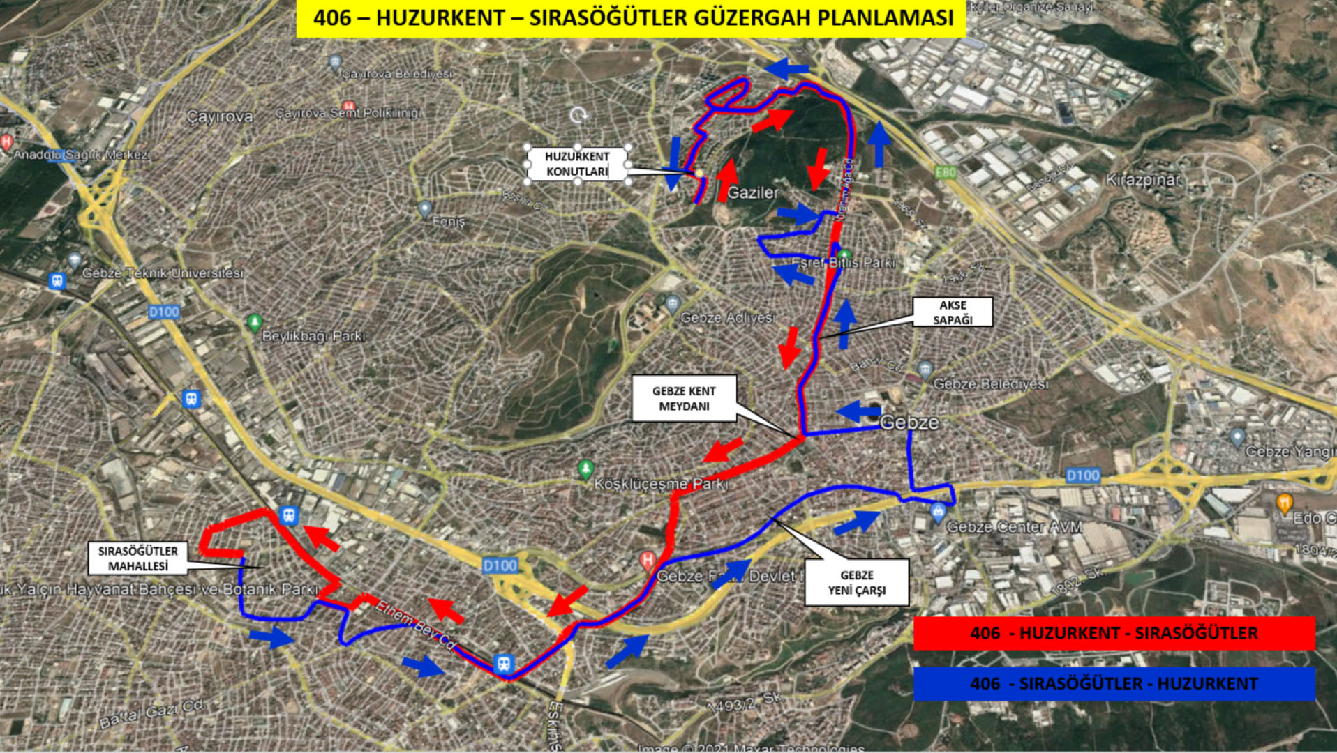 Ulaşım Dairesi Başkanlığı, 406 no’lu İnönü-Sırasöğütler hattı ile 417 no’lu Gebze Marmaray İstasyon-Huzurkent hattında birleşime gitti. 406 hat kodu ile yeni hizmete başlayacak olan hat Huzurkent ile Sırasöğütler arasında hizmet verecek. 406 no’lu hat hem gidiş hem de dönüş yönünde İbrahimağa Caddesini kullanabilecek.