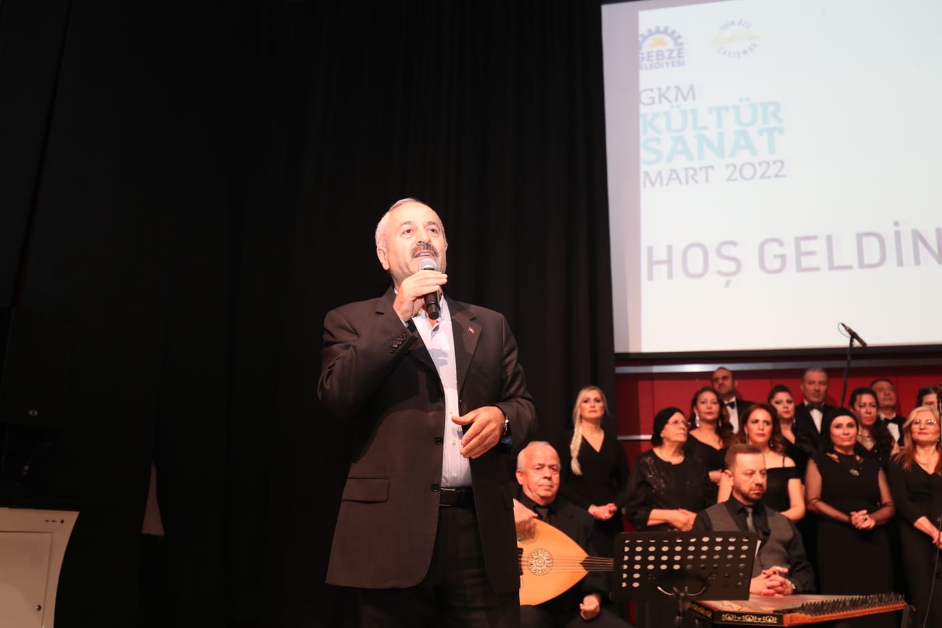 Merkezi’nde gerçekleşen konsere Gebze Belediye Başkanı Zinnur Büyükgöz ve çok sayıda Gebzeli Türk Sanat Müziği sever katıldı. Kısa bir selamlama konuşması gerçekleştiren Gebze Belediye Başkanı Zinnur Büyükgöz konuşmasında salonu dolduran Gebzelilere katılımlarından ötürü teşekkür etti. Başkan Büyükgöz, “Bu akşam burada Türk Sanat Müziğinin çok güzel eserlerini dinleyeceğiz. Ben bir kez daha bu konserin yapılmasında emeği geçenlere, kursiyerlerimize ve siz değerli katılımcılara çok teşekkür ediyorum” dedi. Başkan Büyükgöz’ün selamlama konuşmasının ardından GESMEK Türk Sanat Müziği Korosu, salonu dolduran Gebzelilere unutamayacakları bir konser verdi. Koronun solo ve koro performansı kulakların pasını sildi. Birçok eserde dinleyiciler koroya eşlik ederken konser sonunda Gebze Belediye Başkanı Zinnur Büyükgöz koro şefi Erbil Aydın’ı tebrik ederek çiçek takdim etti.