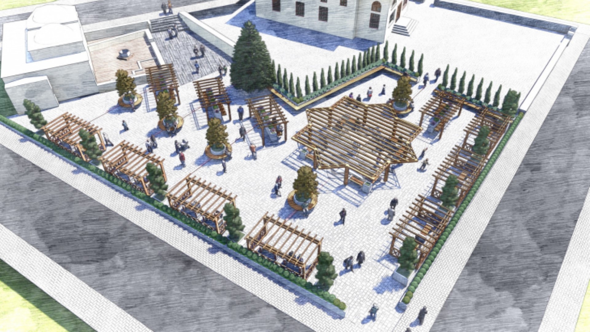 İş kapsamında meydanda Türk motifi granit imalatlarına başlandı. Betonarme saksı imalatları tamamlanırken ahşap kaplamaları devam ediyor. Kullanılmaz hale gelen eski şadırvan yıkılırken yeni şadırvanın yapımı tamamlandı. Pergola ve taş duvar imalatları ise devam ediyor.