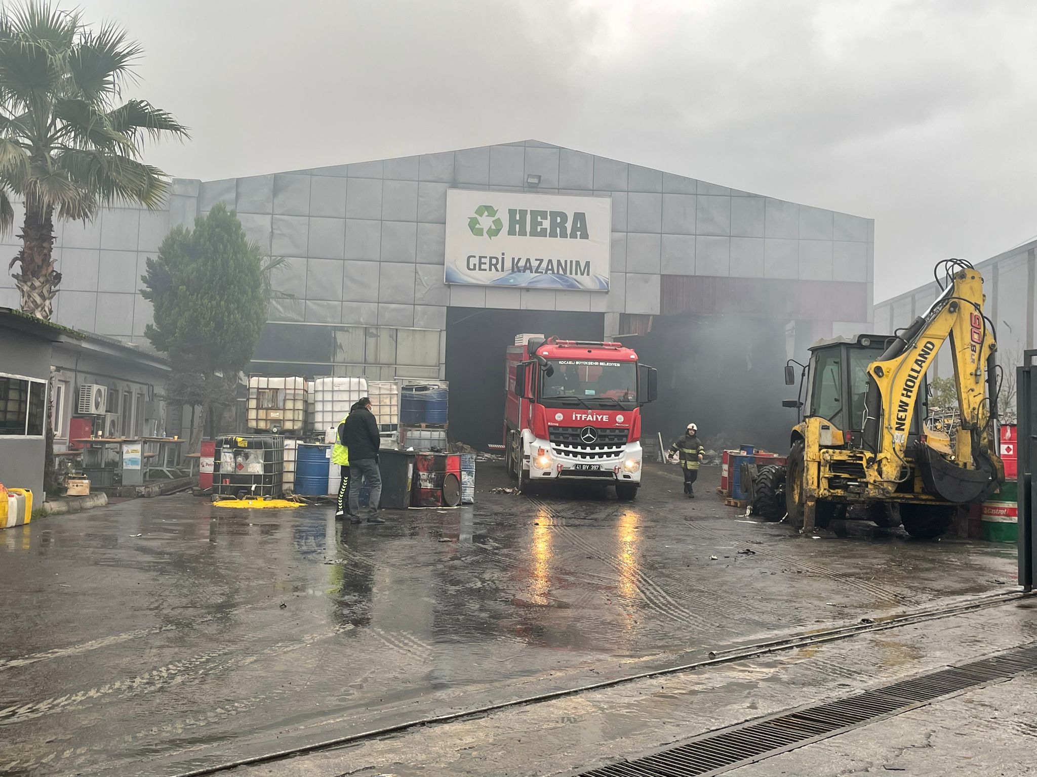 Yangını fark eden çalışanlar, durumu itfaiye ve polis ekiplerine bildirdi.