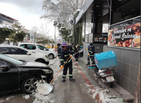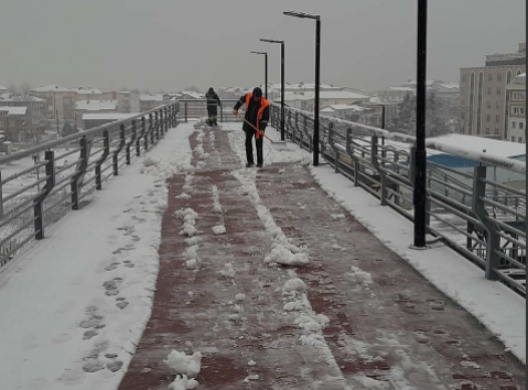 Son iki gündür aralıksız süren kar yağışında yoğun bir şekilde mücadelesini sürdüren ekipler, kar yağışının durması ile birlikte yoğun bir şekilde mahalle, sokak ve caddelerde kaldırım temizleme çalışmalarına ağırlık verdi. Çalışmalar ile ekipler; kaldırımlardaki karları temizleyerek yayaların güvenliği için tuzlama yapıyor.