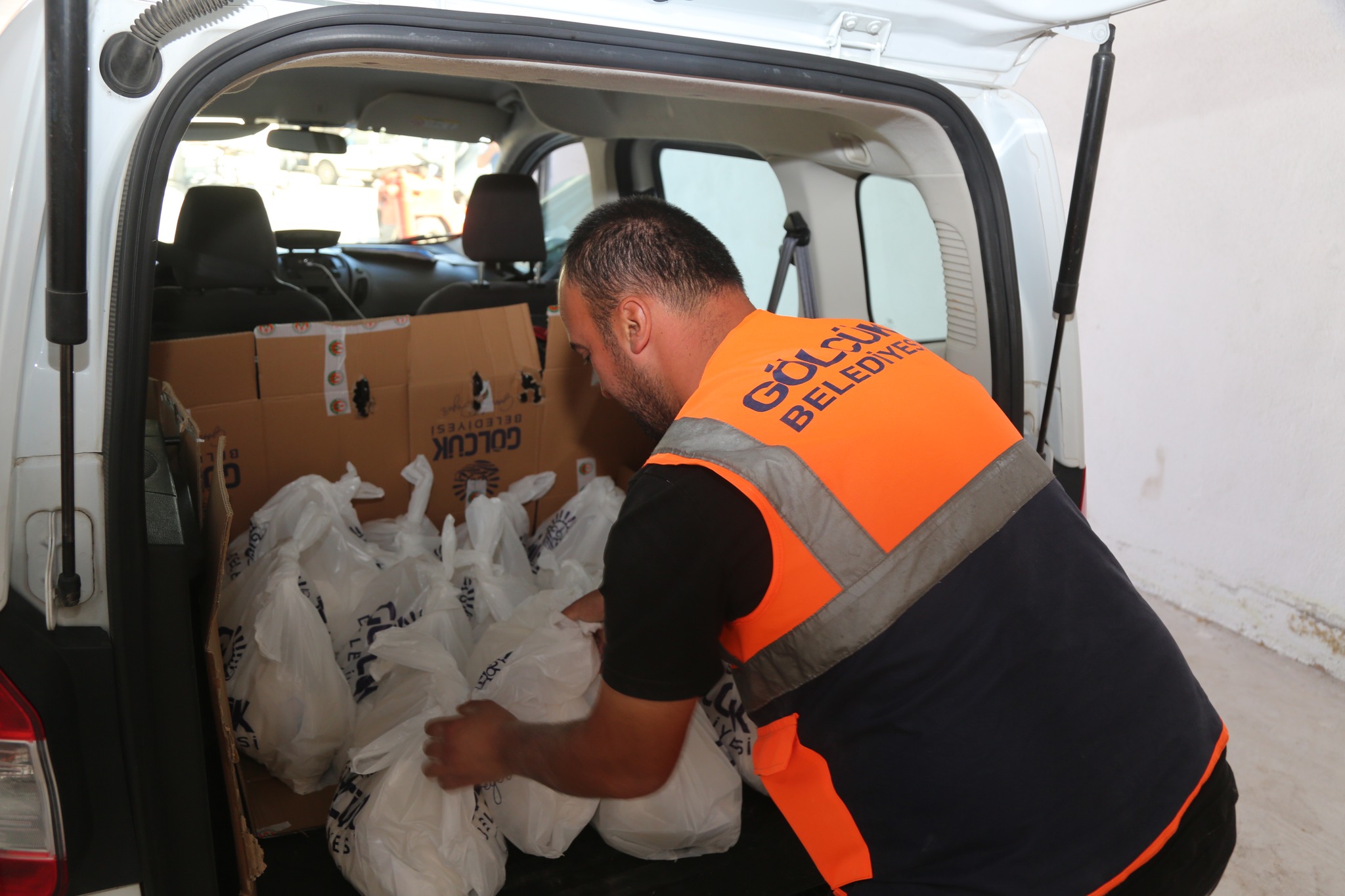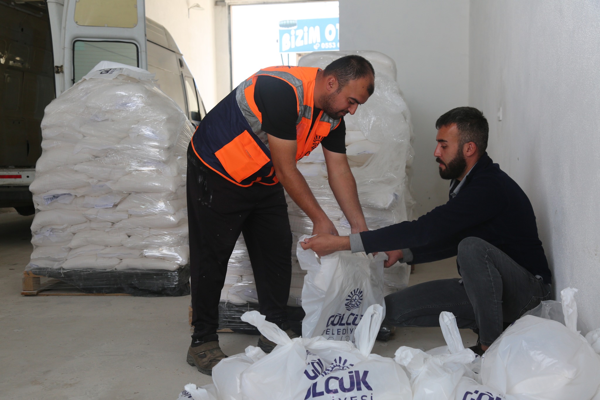 Sabah saatlerinde Gölcük Belediyesi’ne ait depolardan belediye araçlarına yüklenen unlar, daha önce belirlenen ihtiyaç sahibi ailelere ulaştırılmak üzere dağıtıma çıkarıldı. Kapı kapı dolaşan Gölcük Belediyesi ekipleri, belirlenen adreslere 5’er kiloluk paketler halindeki unları teslim ediyor.