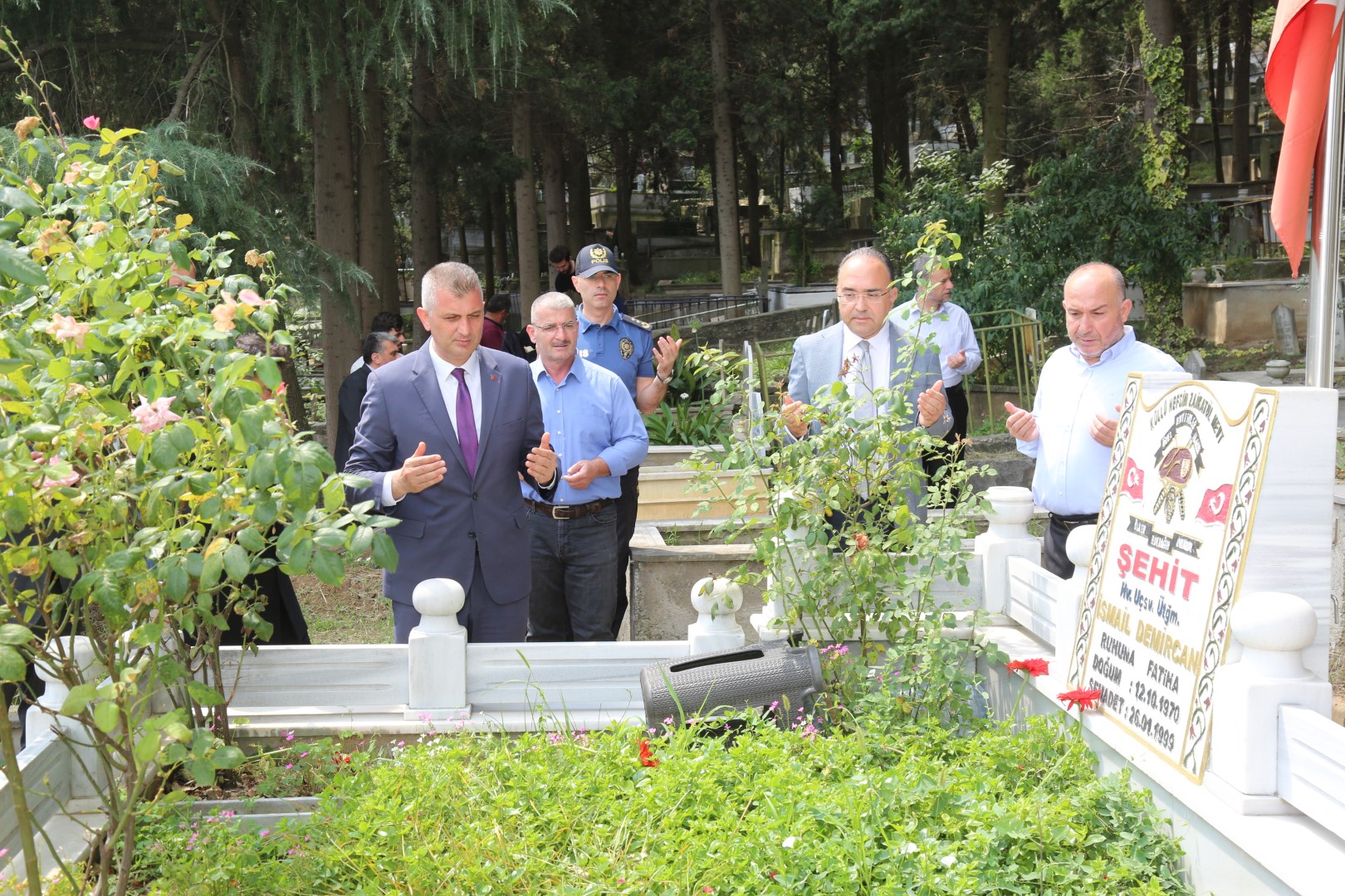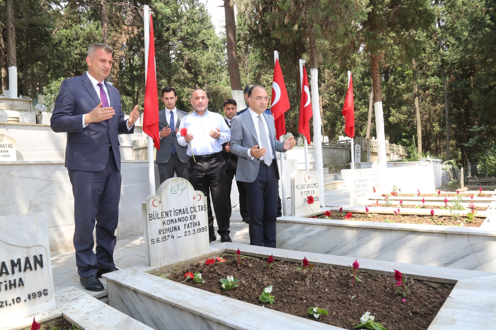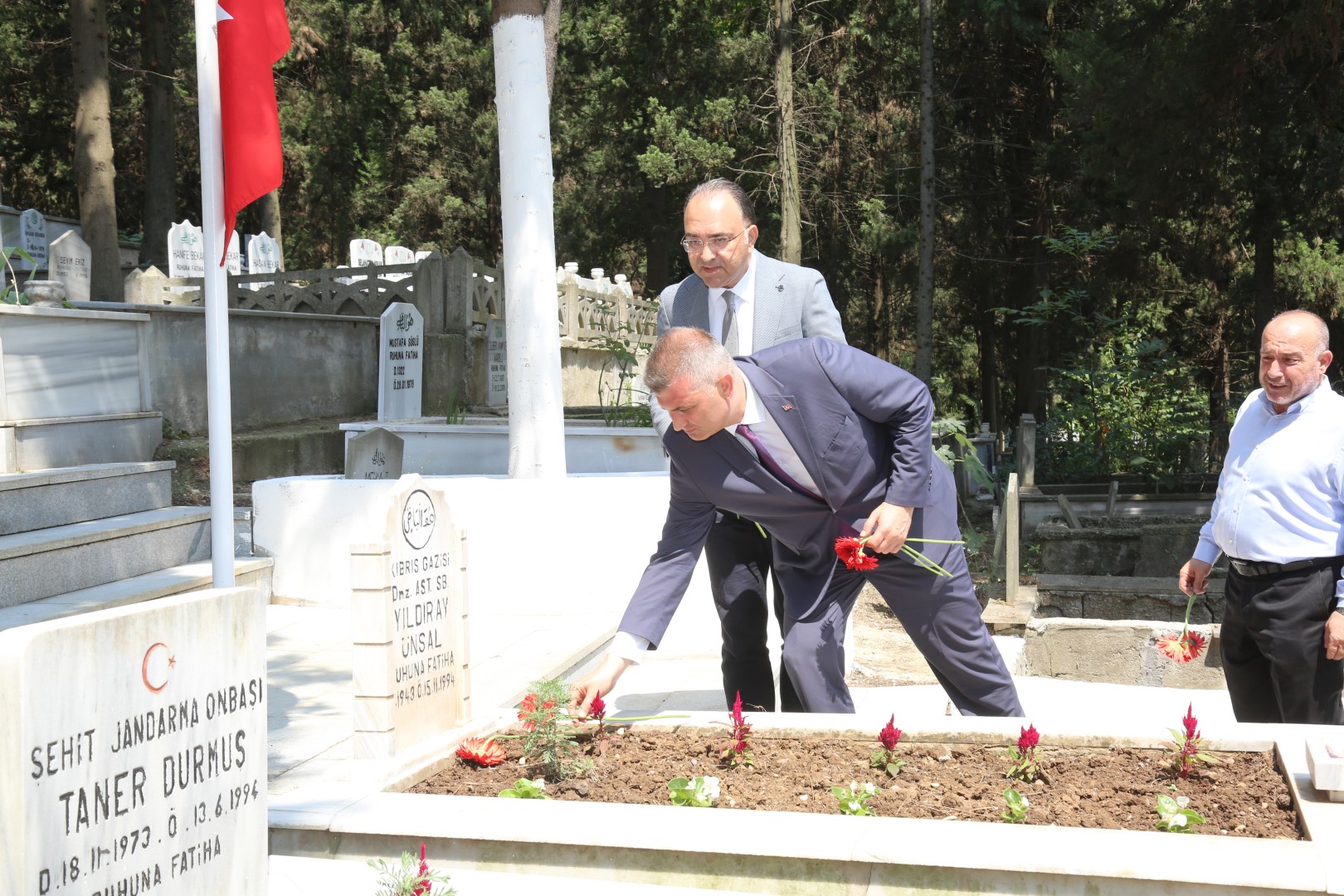 Gölcük Kaymakamı Cengiz Karabulut ve Gölcük Belediye Başkanı Ali Yıldırım Sezer, Kurban Bayramı öncesinde şehitliği ziyaret etti.