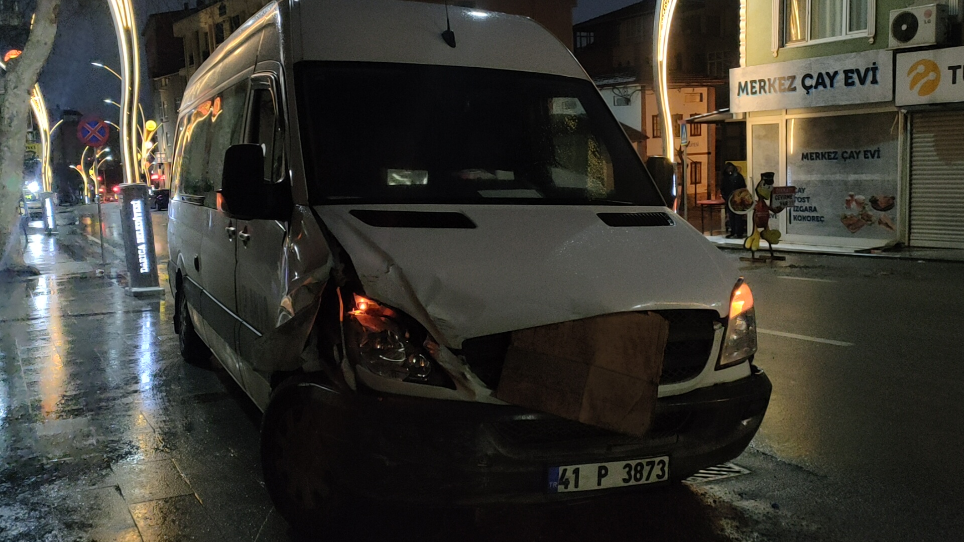 Osmangazi Mahallesi Aşıroğlu Caddesi'nde M.Y. idaresindeki 41 P 3873 plakalı servis minibüsü, karşı yönden gelen A.S. yönetimindeki 41 AGK 659 plakalı hafif ticari araçla çarpıştı.