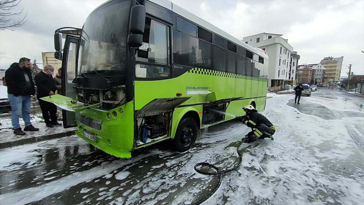 Çayırova'da özel halk otobüsünde çıkan yangın söndürüldü