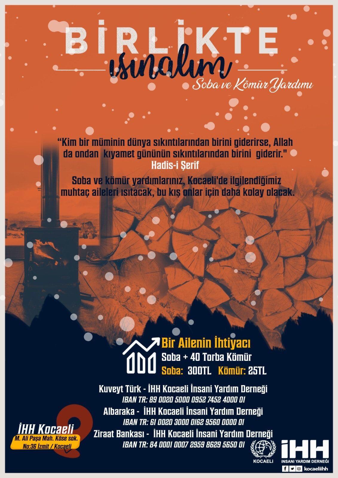 Bu yılki kış çalışmalarına “Birlikte Isınalım” sloganıyla başlayan İHH Kocaeli İnsani Yardım Derneği, Kocaeli genelinde yürüteceği faaliyetler sonucunda ihtiyaç sahibine ailelere soba ve kömür yardımlarını ulaştıracak.