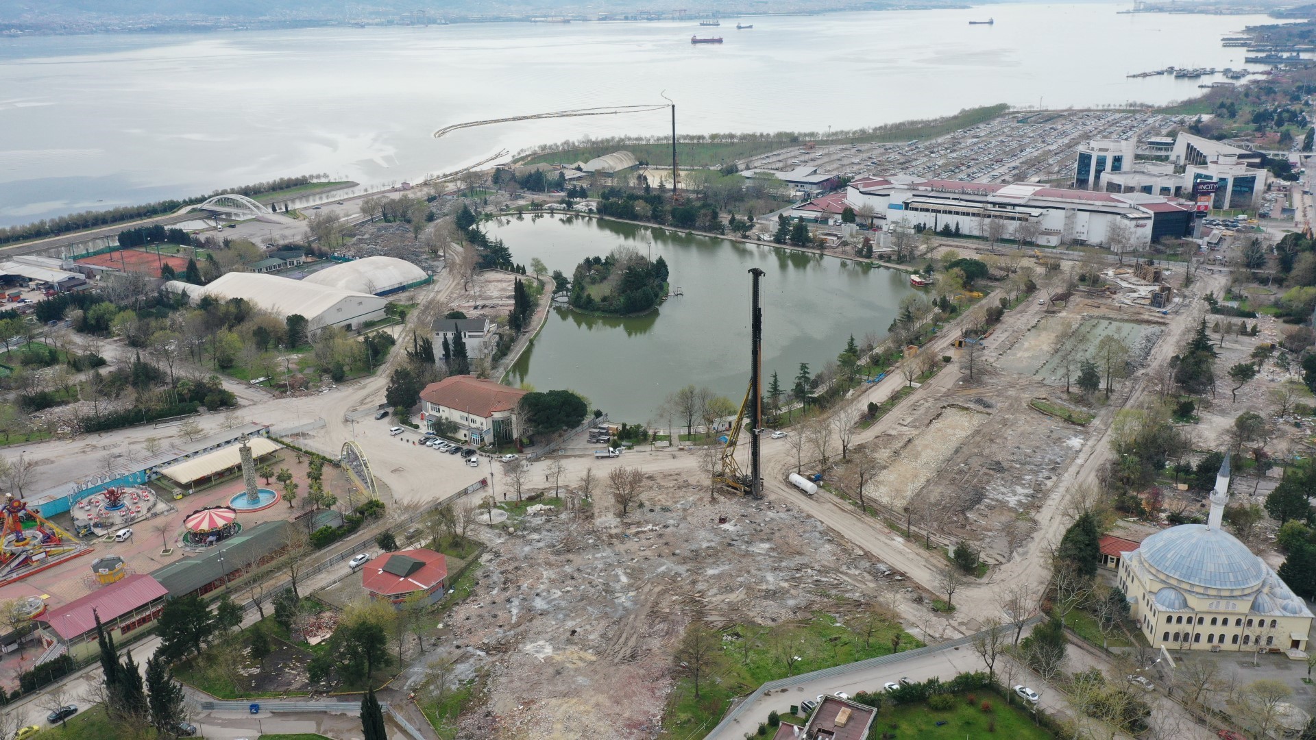 Kocaeli Fuarı’nın İzmit Millet Bahçesine dönüştürülmesi için çalışmalar devam ediyor. Projenin hızla ilerlemesiyle İzmit Millet Bahçesi’ndeki, kafe alanları şekillenmeye başladı. Eski yapıların yıkıldığı Kocaeli Fuarı’nda zemin güçlendirilmesi için fore kazık imalatları yapıldı. Düğün salonlarında fore kazık imalatları tamamlandı. Kazıkların aralarının kazı işlemleri devam ediyor. Su deposu bölgesinde de fore kazık imalatlarına sürüyor. Kocaeli Büyükşehir Belediyesi’nin projesi çerçevesinde İzmit Millet Bahçesi içerisinde yer alacak yapılar için de çalışmalar sürüyor. Proje içerisinde yer alan kafe 1'in çelik kolonlarının montajına başlandı. Kafe 2'nin dolgusu biterken grobetonu dökülüyor. Kafe 3’te ise kolon perde kalıpları kapatıldığı yakın zamanda beton dökümü yapılacağı belirtildi.
