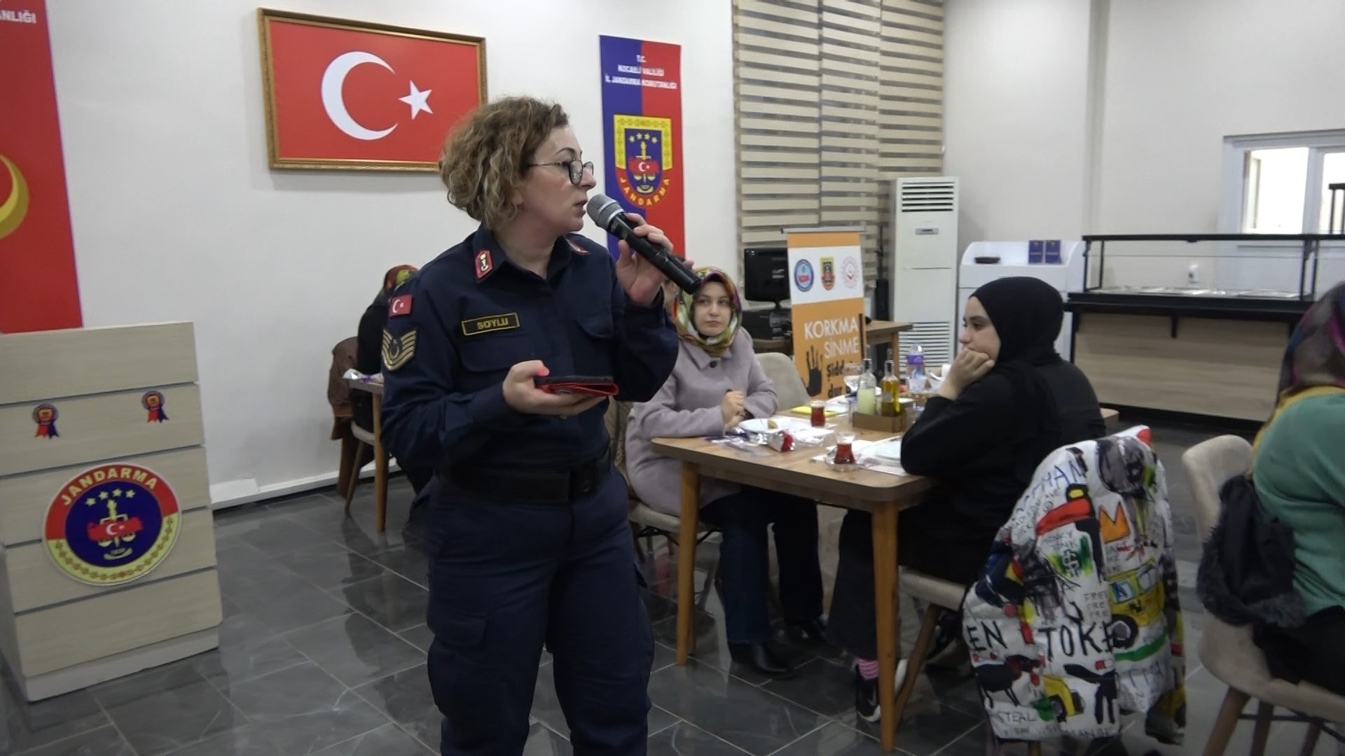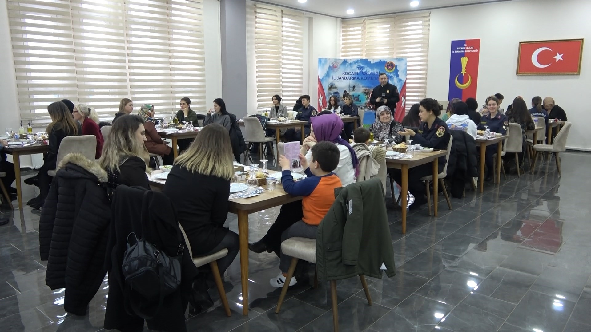 İl Jandarma Komutanlığı, sorumluluk bölgesinde geçici ya da kalıcı olarak ikamet eden depremzede kadınlara sosyal destek sağlamak ve yalnız olmadıklarını hissettirmek amacıyla etkinlik düzenledi. Jandarma ekipleri tarafından bulundukları ikametlerden araç ile alınan kadınlar ve çocuklar, İl Jandarma Komutanlığı'na ait sosyal tesiste düzenlenen yemek programında bir araya geldi. Programa, İl Jandarma Komutanı Albay Yavuz Selim Kapancı'nın eşi Hilal Kapancı da katıldı. Hilal Kapancı ve Aile İçi Şiddetle Mücadele Kısım Amiri Astsubay Kıdemli Üstçavuş Şenay Soylu masaları tek tek gezerek, depremzede kadınlar ile sohbet etti.