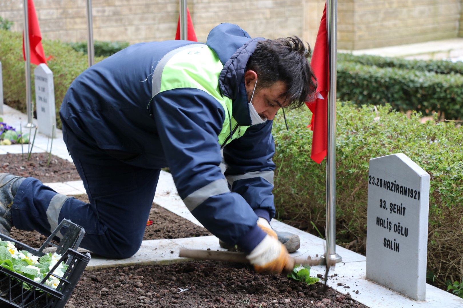 Kocaeli Büyükşehir Belediyesi olarak şehitliklerimize her daim gözümüz gibi bakıyoruz. Kocaeli Büyükşehir Belediyesi Park ve Bahçeler Dairesi Başkanlığı Mezarlıklar Müdürlüğü, Bağçeşme Namazgah Şehitliği ve Kocaeli genelindeki tüm şehit mezarlarının yoğun kar yağışından zarar görmüş çiçeklerin bakımını ve yerine yenilerinin ekimini, temizliğini en güzel şekilde yapıyor. Canlarını vatan uğruna feda eden şehitlerimizin emanetlerine hassasiyetle sahip çıkılıyor.