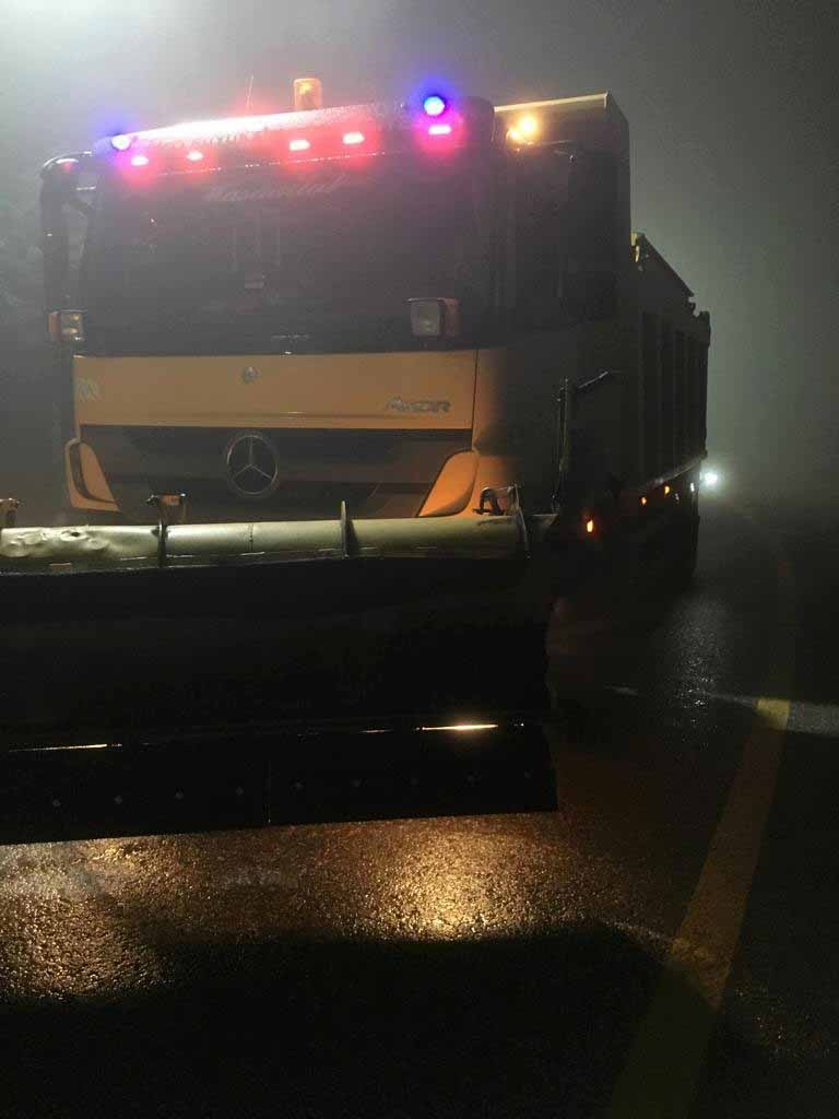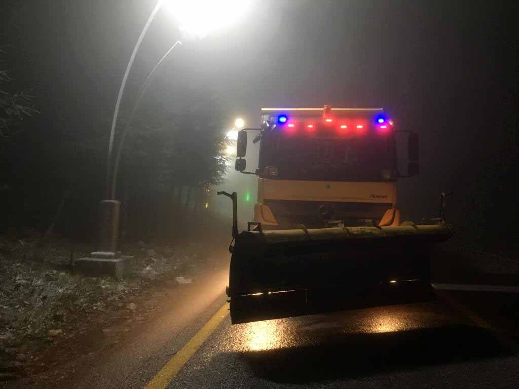 Kocaeli Büyükşehir Belediyesi Karla Mücadele ekipleri, dün gece itibariyle etkisini göstermesi beklenen kar yağışı öncesinde, ilimizin rakımı en yüksek noktası olan Kartepe zirve yolunda nöbetteydi. Muhtemel kar yağışının yolda buzlanmaya sebep olarak araçların kaymasına sebep olmaması için sabaha kadar nöbet tutan ekipler, kentimizin önemli turizm merkezi Kartepe zirve yolunda yol açma ve tuzlama çalışmaları yapmak için bekledi.